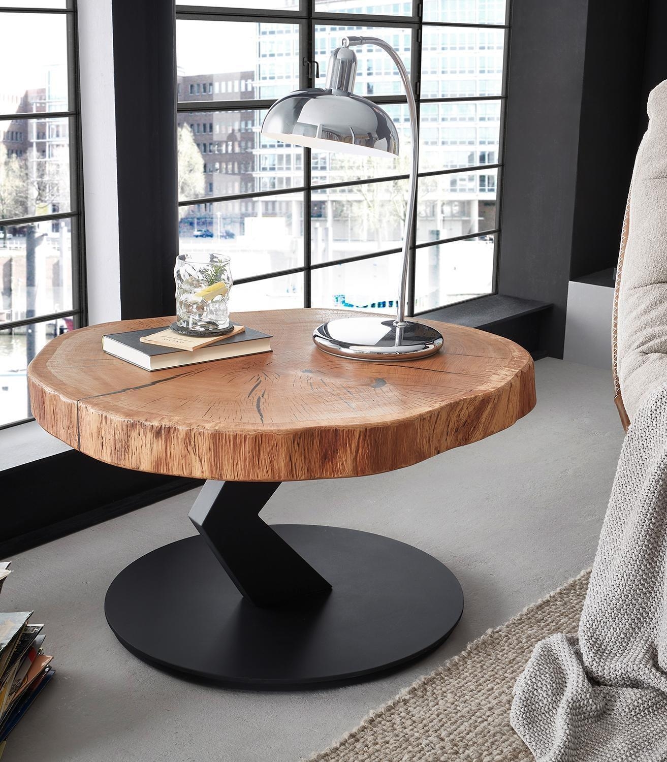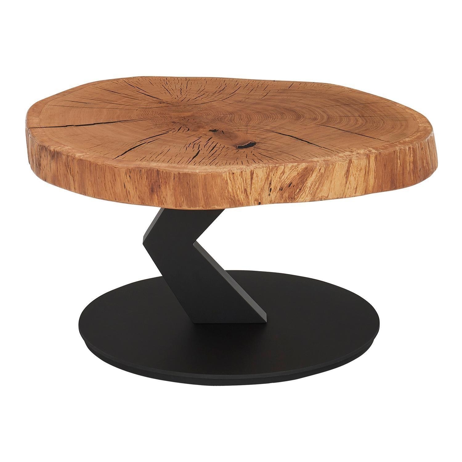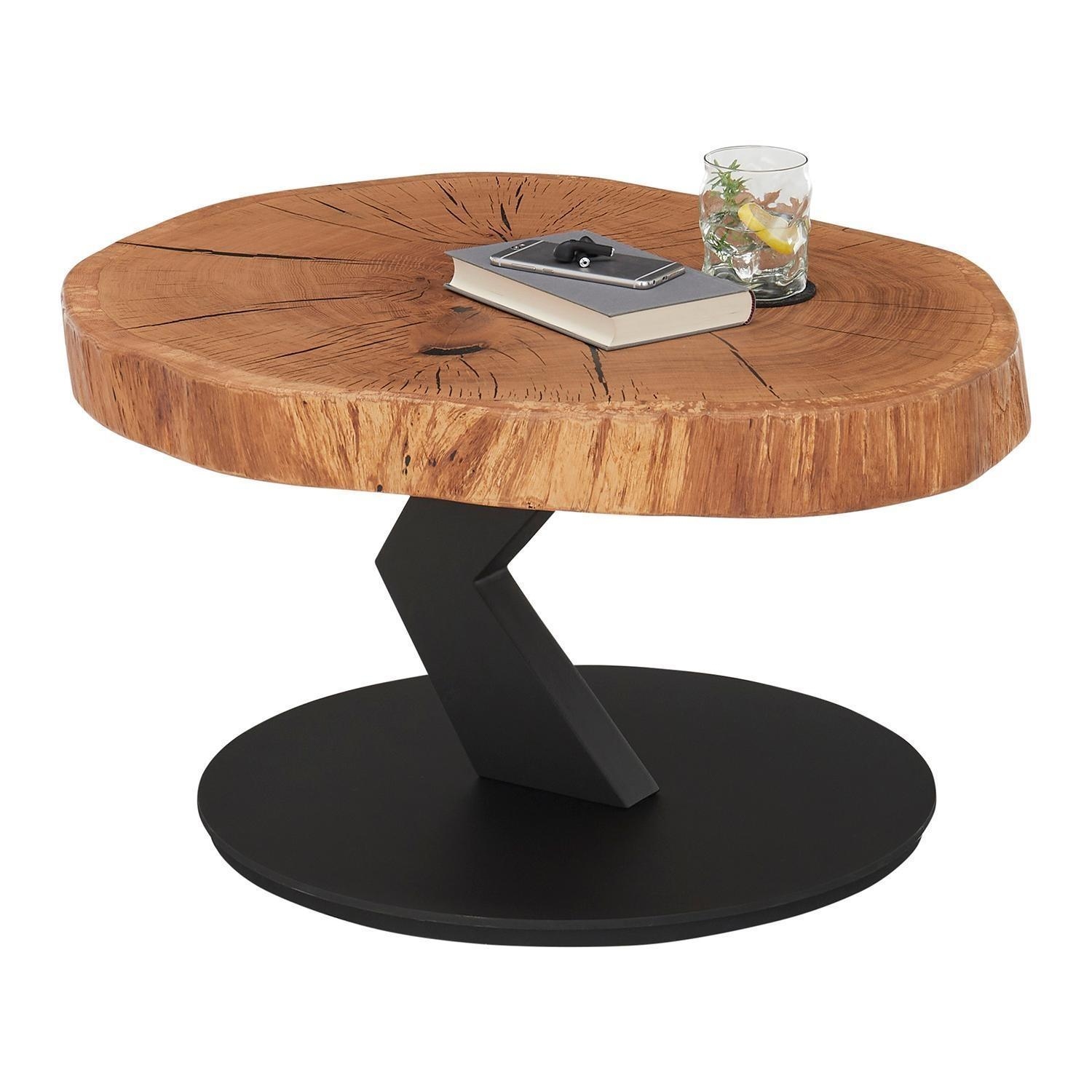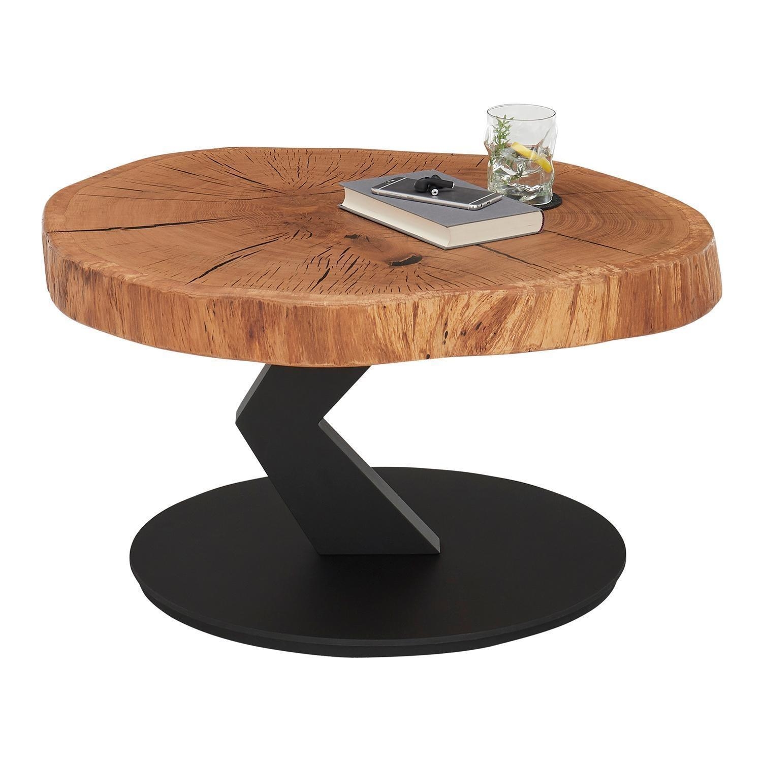 Ø 75 cm - Braun - Schwarz - Eichenholz massiv - Metall