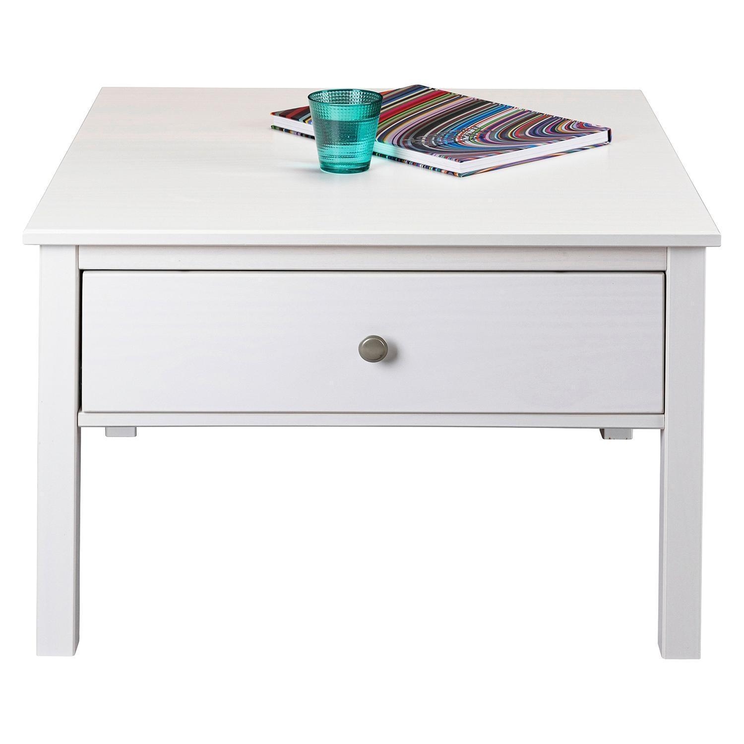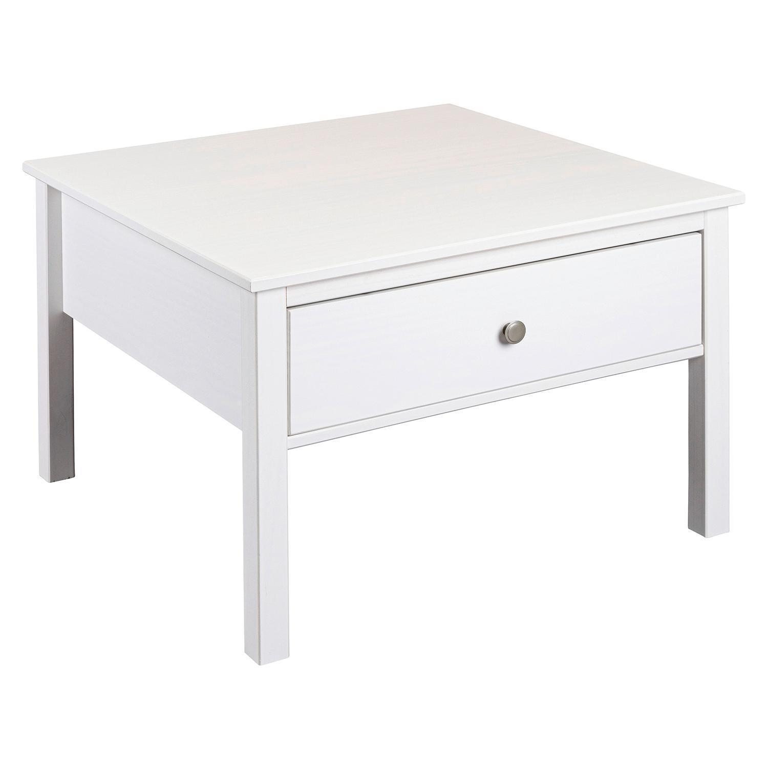 70 x 70 cm - 1 Schublade - Weiß - Kiefernholz massiv