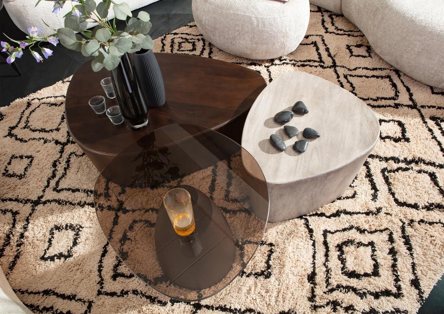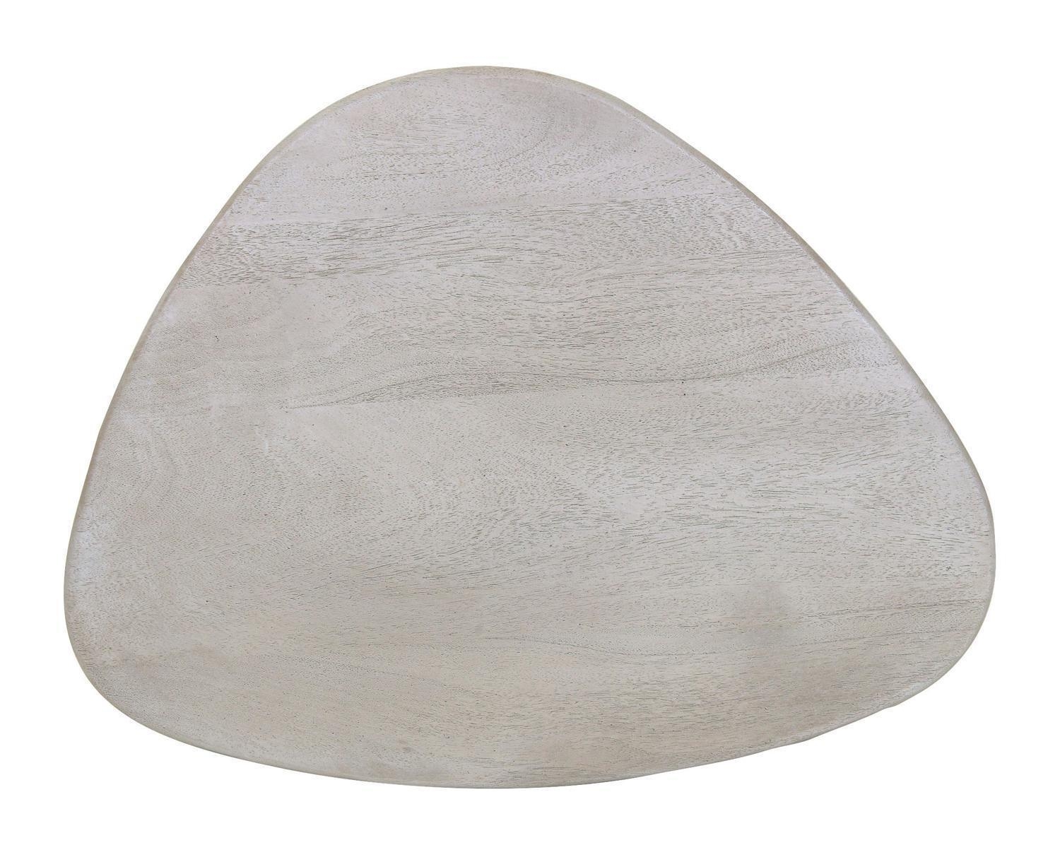 Der Couchtisch PERONI beeindruckt mit seinem natürlichen Charme und seiner einzigartigen Formgebung. Gefertigt aus furniertem Mangoholz und in strahlendem Weiß gehalten, fügt er sich stilvoll in moderne Wohnkonzepte ein. Die organisch geformte Tischplatte bietet mit einer Breite von 68 cm, einer Höhe von 35 cm und einer Tiefe von 53 cm genügend Platz für Fernbedienungen, Zeitschriften oder dekorative Elemente. Ein Blickfang für stilvolle Wohnzimmer.