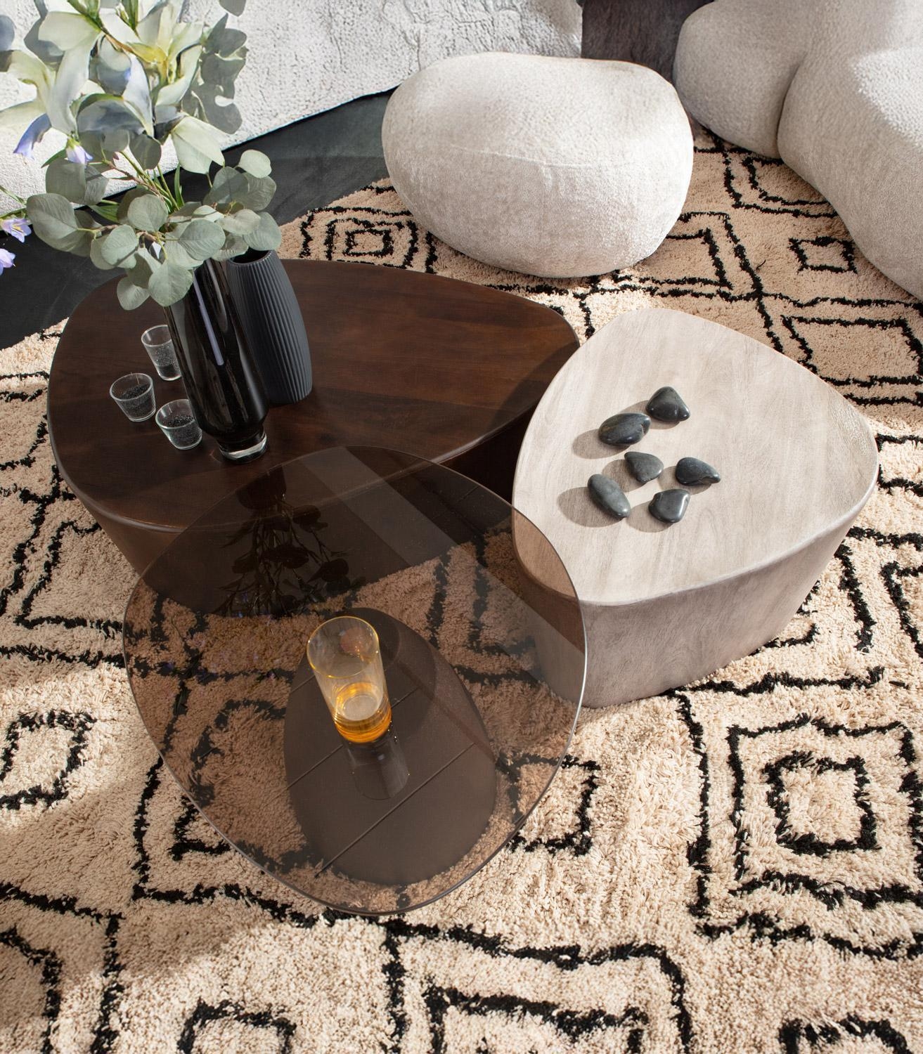 Der Couchtisch PERONI beeindruckt mit seinem natürlichen Charme und seiner einzigartigen Formgebung. Gefertigt aus furniertem Mangoholz und in Braun gehalten, fügt er sich stilvoll in moderne Wohnkonzepte ein. Die organisch geformte Tischplatte bietet mit einer Breite von 106 cm, einer Höhe von 30 cm und einer Tiefe von 78 cm genügend Platz für Fernbedienungen, Zeitschriften oder dekorative Elemente. Ein Blickfang für stilvolle Wohnzimmer.