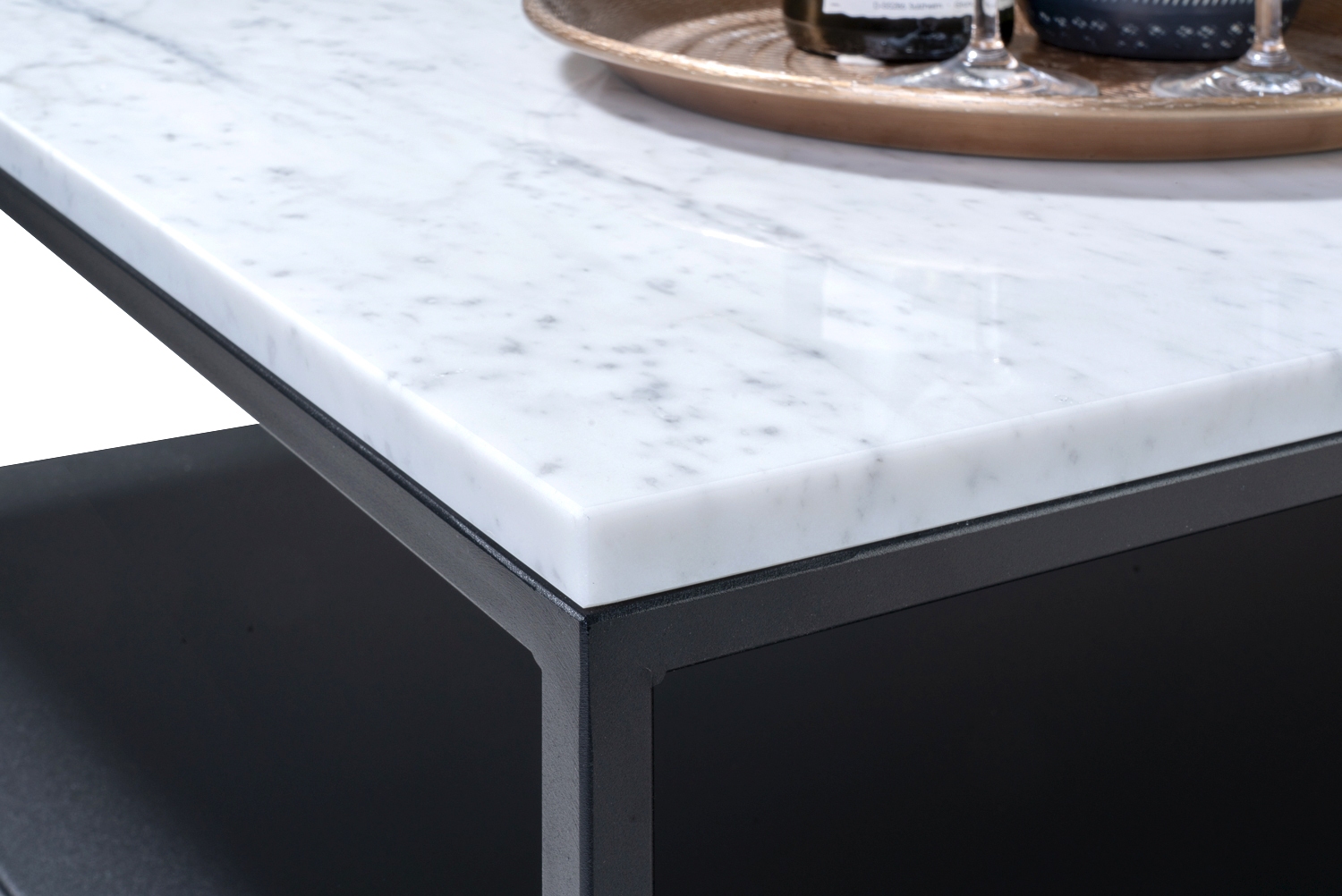 Weiß - Grau - Schwarz - 60 x 100 cm - Marmorplatte - Metallgestell