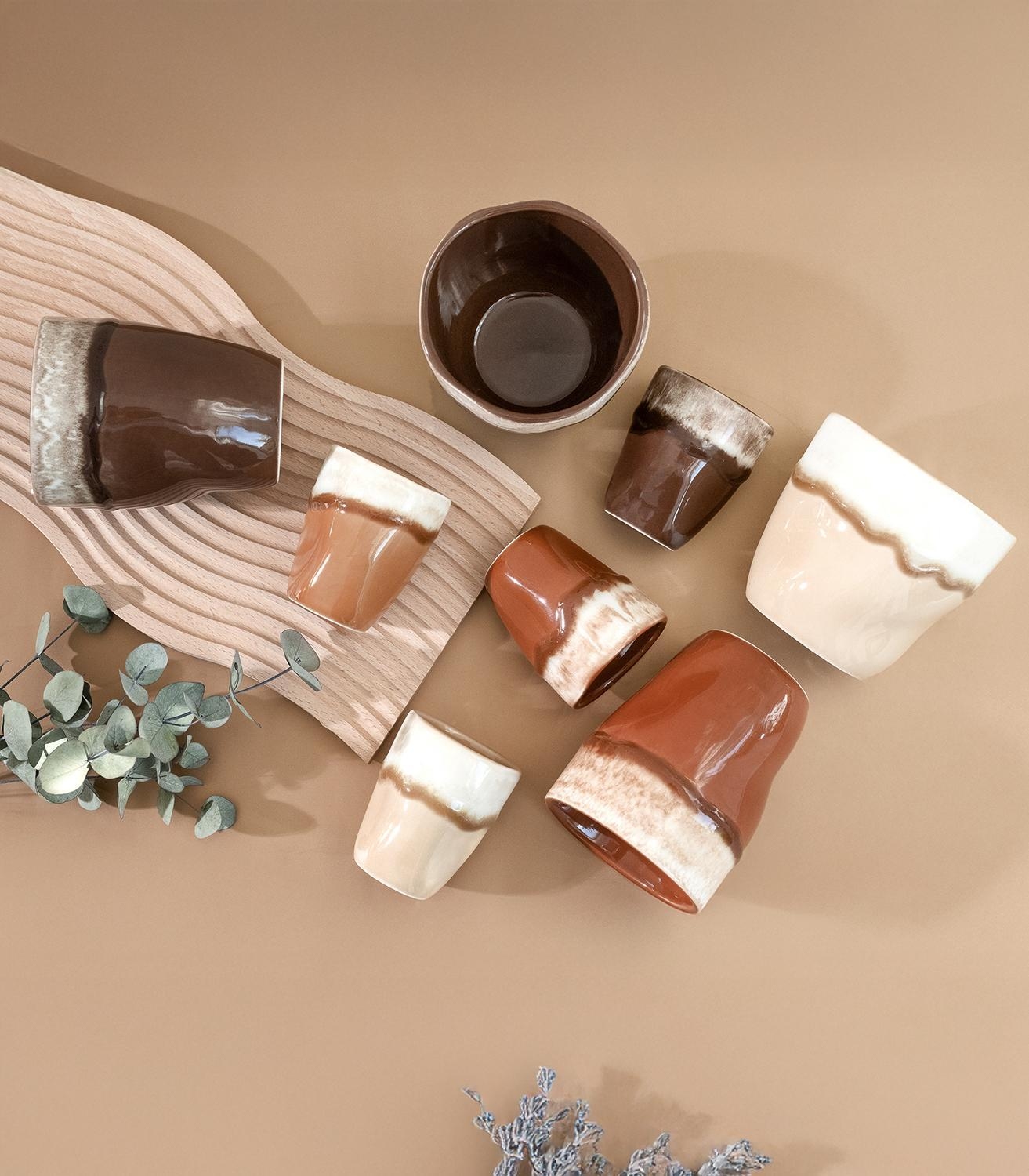 80 ml - Karamell - Steinzeug - mit beigem Rand - glasiert