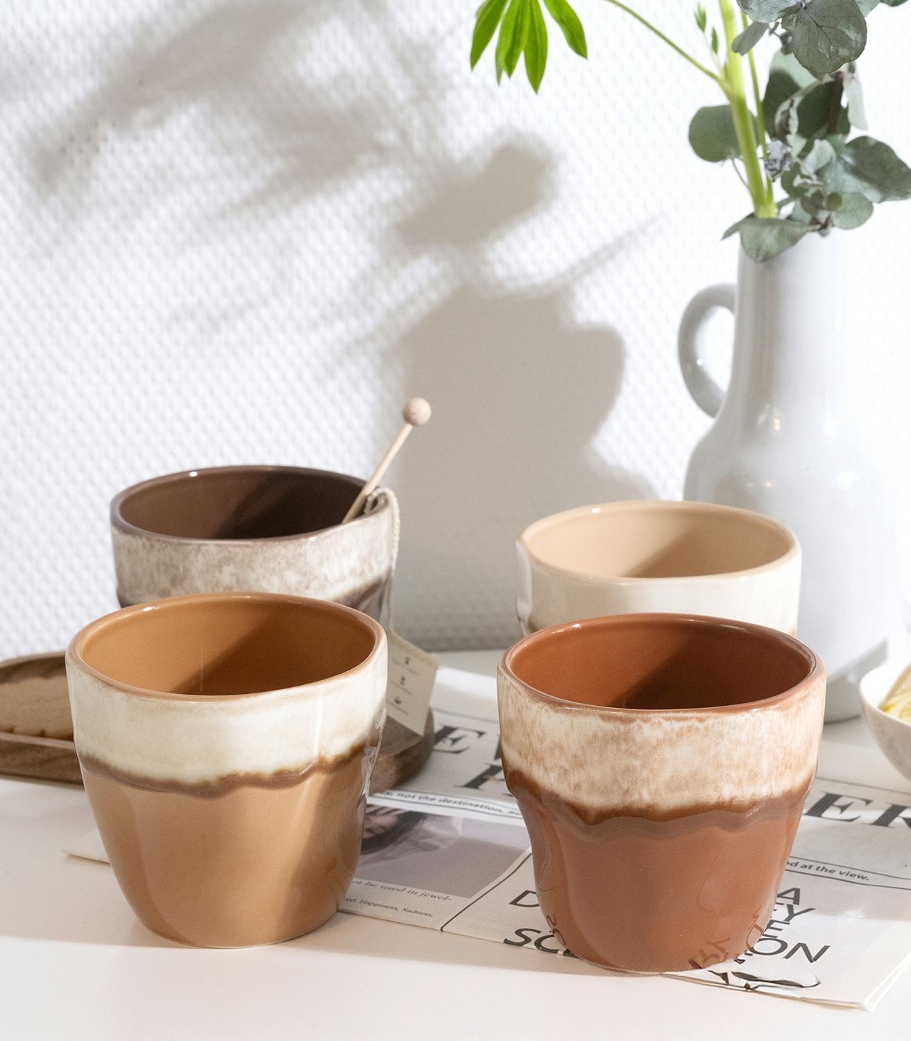 - Kaffeebecher ohne Henkel in Karamell