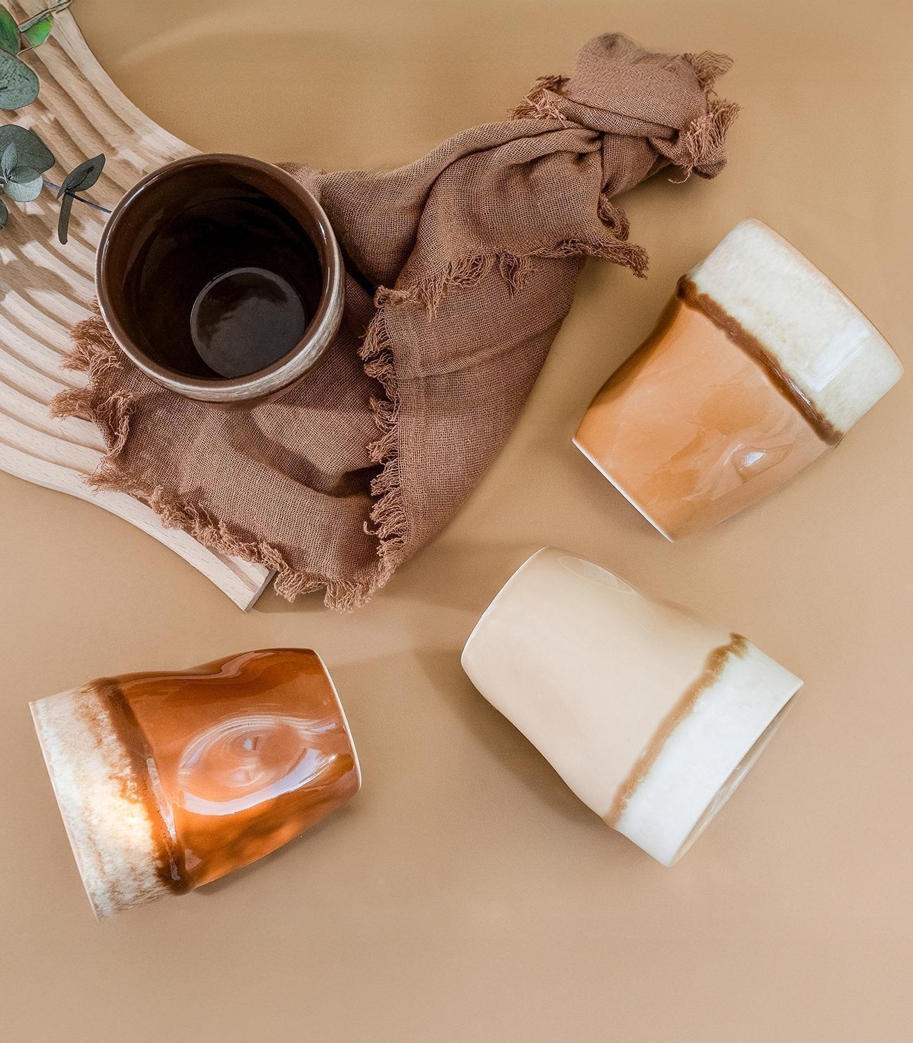 350 ml - Nougatbraun - Steinzeug - mit beigem Rand - glasiert