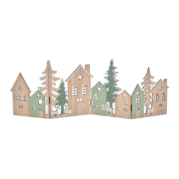 Die Deko-Häuser LANDSCAPE bestehen aus stabilem Holz und sind in den Farben Braun und Jadegrün gestaltet. Mit einer Breite von 58 cm und einer Höhe von 21 cm eignen sie sich ideal als festliche Dekoration für die Weihnachtszeit. Die Häuser lassen sich platzsparend zusammenklappen und können so nach Bedarf einfach aufgestellt oder verstaut werden.