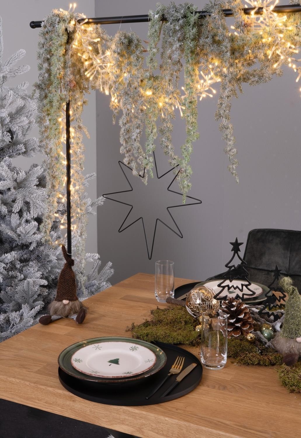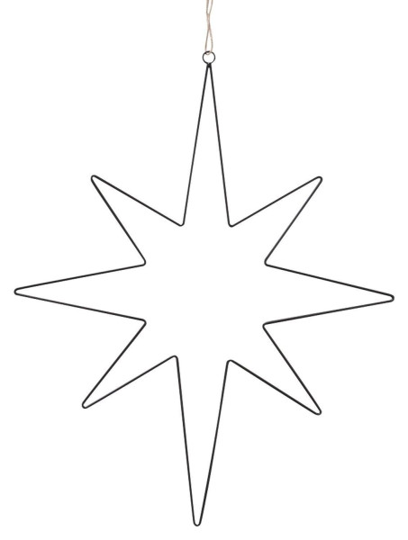 Der Deko-Sternhänger KOMET setzt stilvolle Akzente in der Weihnachtszeit. In Schwarz matt gehalten und aus pulverbeschichtetem Eisen gefertigt, überzeugt er mit einer Größe von 55 x 55 cm. Der Stern lässt sich ideal an Fenstern aufhängen und bringt eine festliche Stimmung in jeden Raum.