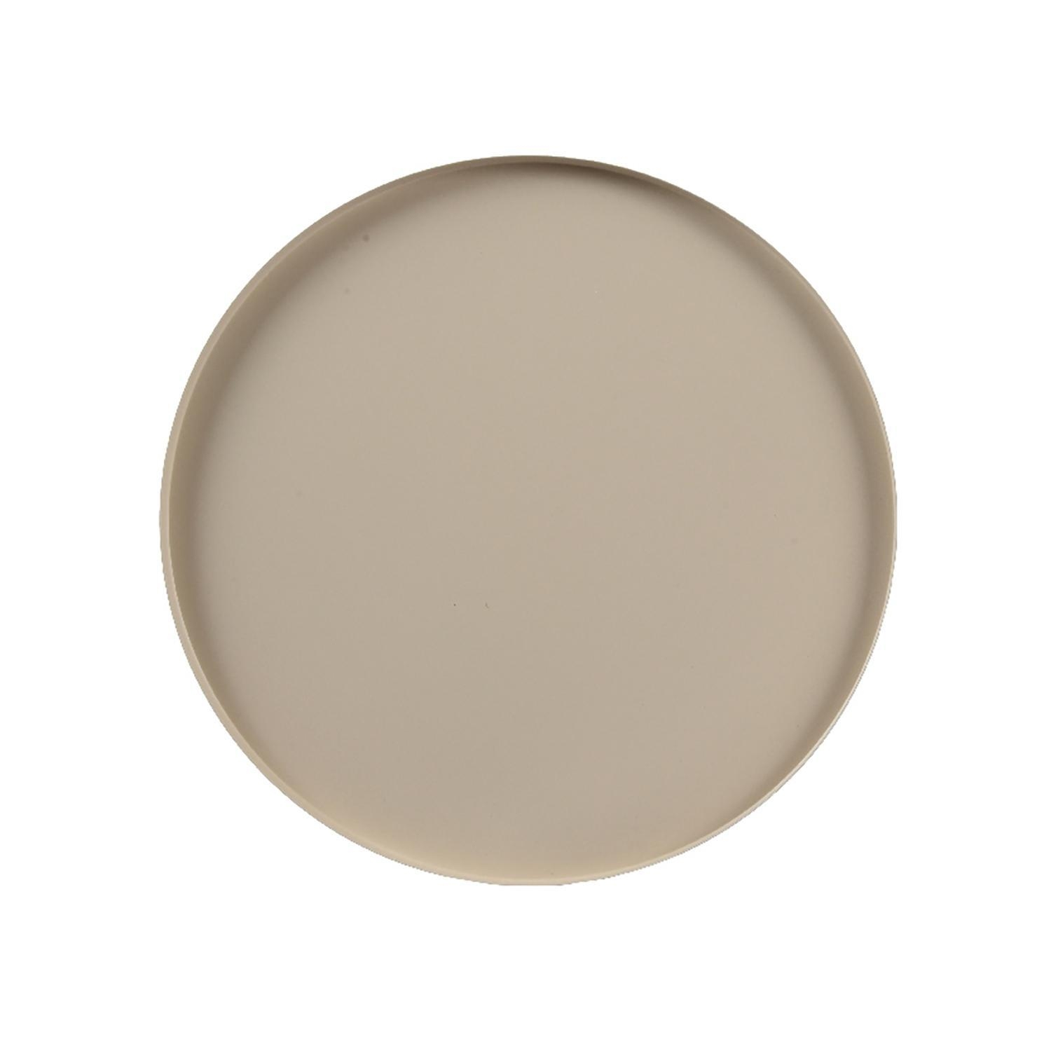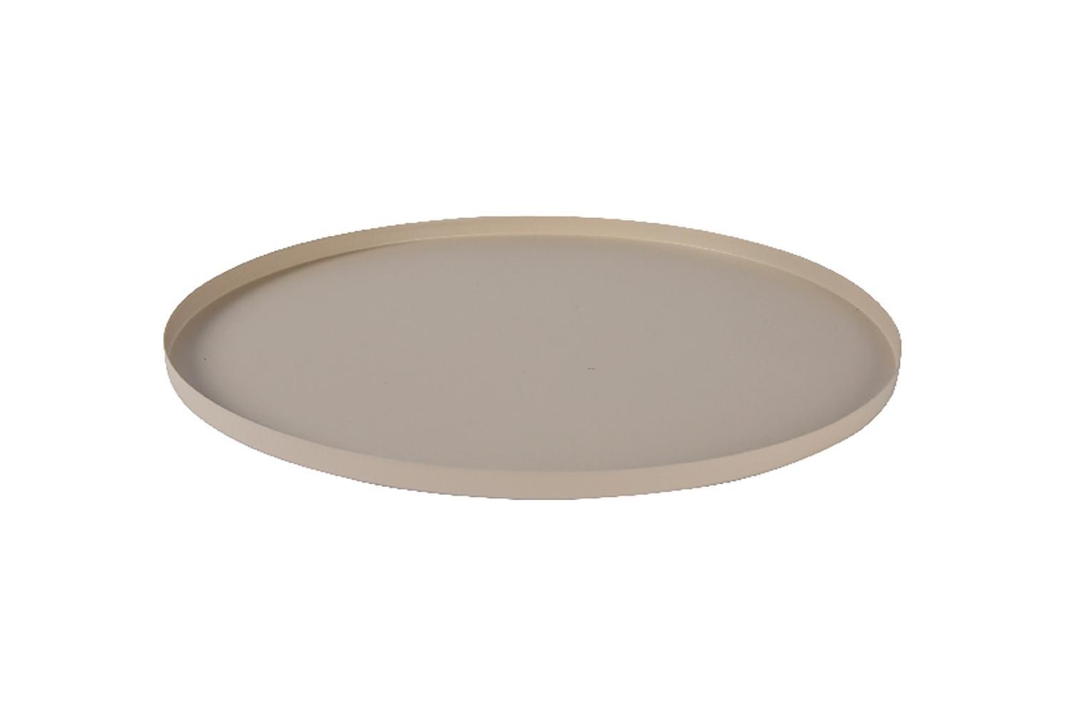 Das Deko-Tablett FAXON hat einen Durchmesser von 35 cm und ist in einem matten Sandfarben gehalten. Hergestellt ist es aus Eisen und hat eine Höhe von 1,5 cm. Dank seiner runden Form ist es vielseitig einsetzbar und kann als dekoratives Element in verschiedenen Räumen genutzt werden.