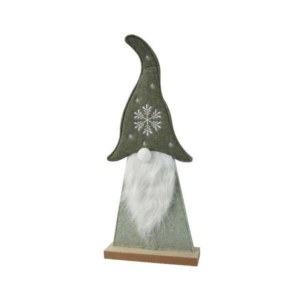 Der Deko-Zwerg ZARRY besteht aus grünem Filz und verfügt über einen flauschigen weißen Bart. Er steht auf einem stabilen Holzsockel und kann als festliche Dekoration auf Tischen oder an Fenstern verwendet werden. Die Maße des Zwergs betragen 9 cm in der Breite, 21 cm in der Höhe und 4,5 cm in der Tiefe.