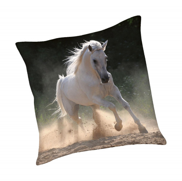 AKIRA bringt mit seinem Pferdemotiv frischen Charme in Ihr Zuhause. Die Vorderseite zeigt ein realistisches Fotomotiv, die Rückseite ist schlicht weiß gehalten. Mit einer Größe von 40 x 40 cm und einer weichen Polyesterfüllung bietet das Kissen angenehmen Komfort auf Sofa, Bett oder Sessel.