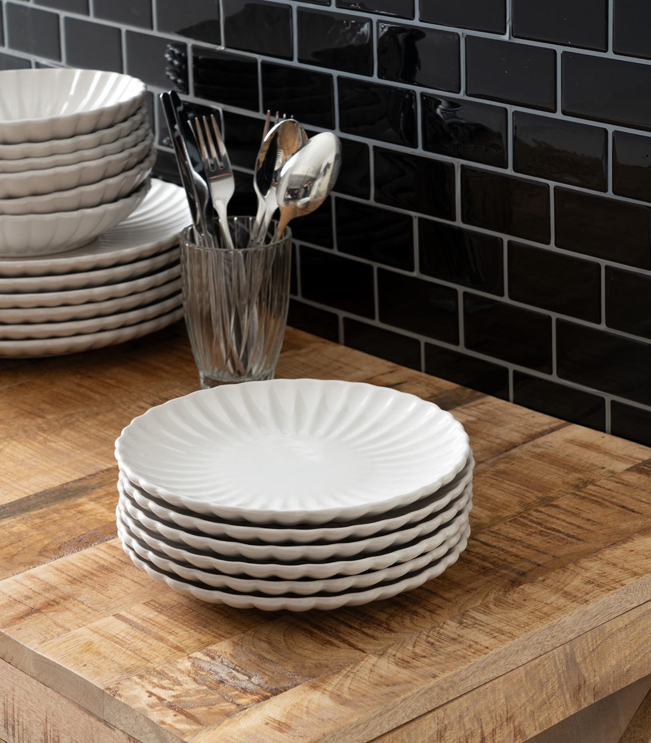 Der Dessertteller GROOVES in Creme bringt mit seiner feinen Rillenoptik stilvolle Akzente auf den Tisch. Mit einem Durchmesser von 19,5 cm eignet er sich ideal für Dessert aller Art. Gefertigt aus robustem Steingut, ist der Teller nicht nur optisch ansprechend, sondern auch alltagstauglich und spülmaschinengeeignet. Ein vielseitiges Einzelstück, das moderne Eleganz mit praktischer Handhabung verbindet.