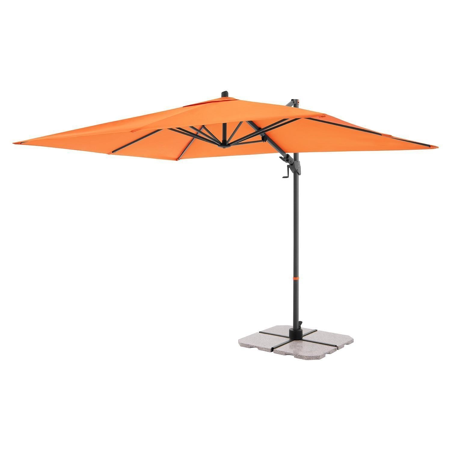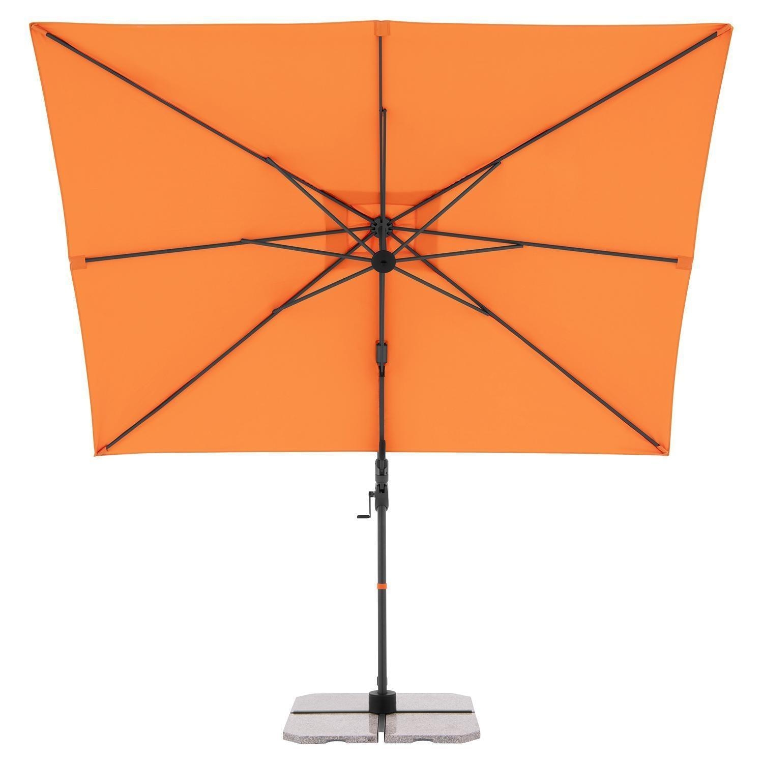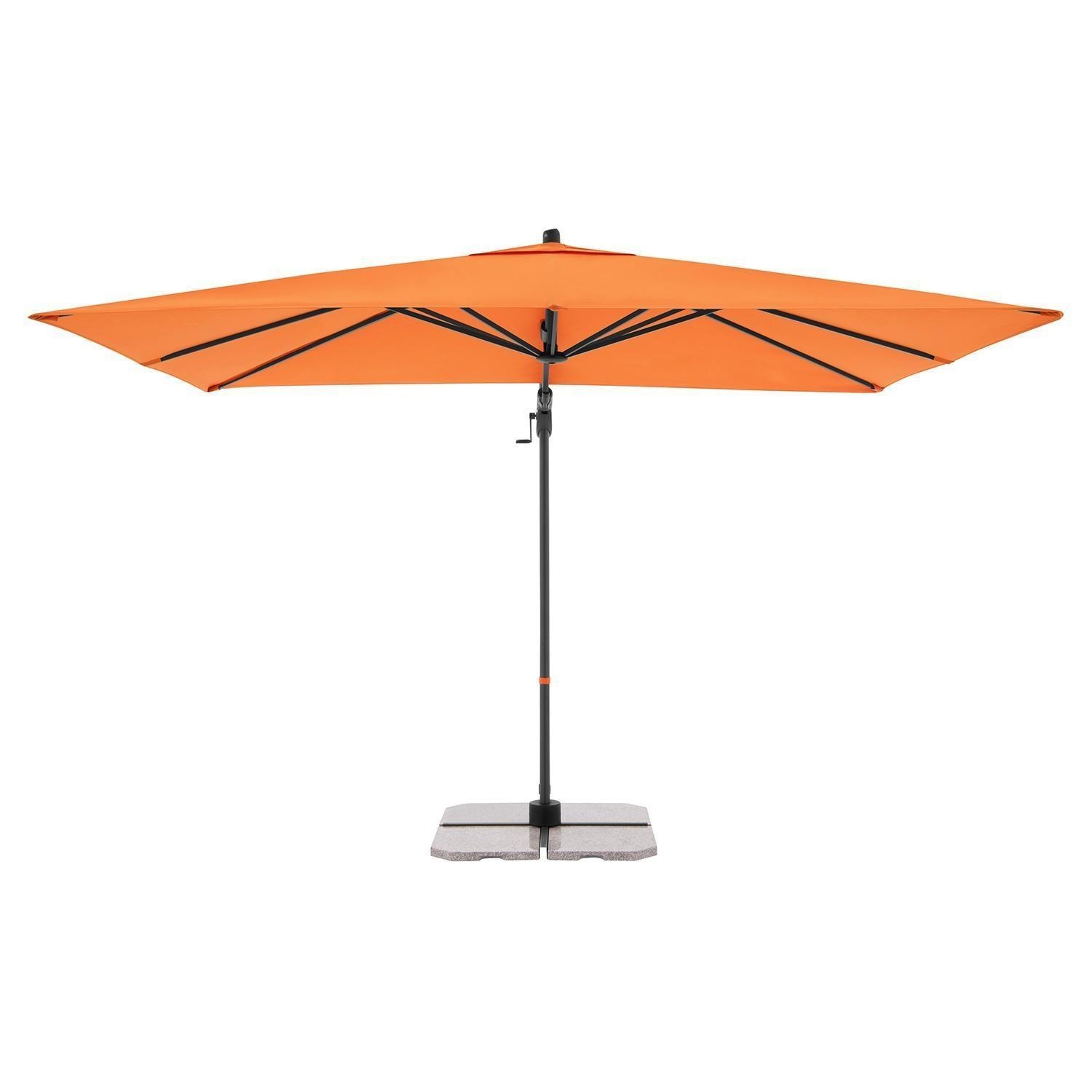Lieferumfang: 1 Ampel-Sonnenschirm mit Standkreuz. Bodenplatten sind nicht enthalten