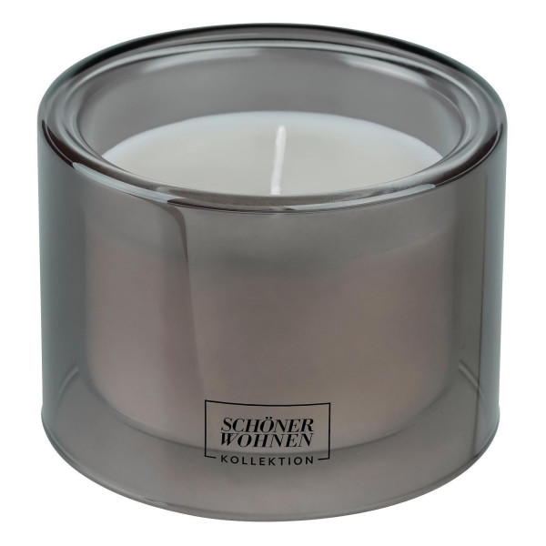 Die Duftkerze M von Schöner Wohnen verleiht jedem Raum eine angenehme Atmosphäre. Sie befindet sich in einem grauen, wiederverwendbaren Glas mit einem Durchmesser von 9,5 cm und einer Höhe von 7 cm. Das Glas ist mit 160 g weißem Kerzenwachs gefüllt und duftet nach erfrischender Jasmin und aromatischem Zedernholz. Mit einer Brenndauer von 30 bis 40 Stunden sorgt die Kerze für langanhaltenden Genuss. Perfekt für entspannte Abende oder als stilvolle Dekoration.