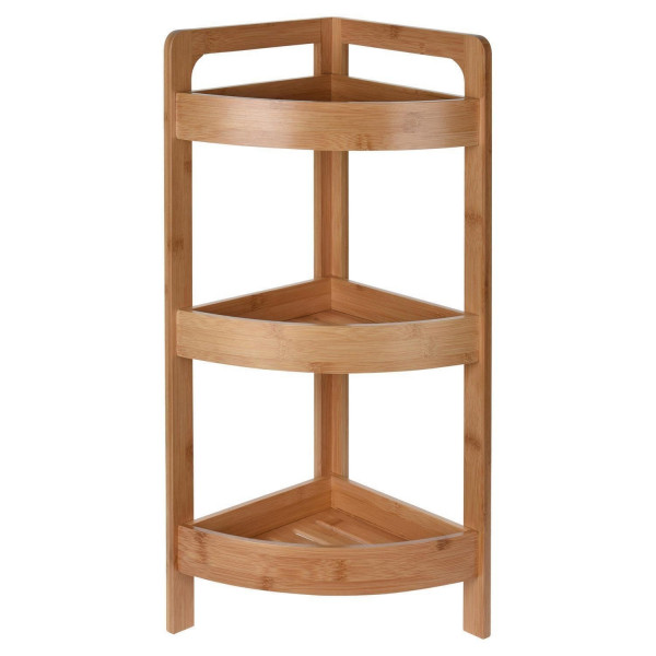 Das Eckregal GLARIS aus Bambus in Braun ist eine platzsparende und stilvolle Lösung für jede Ecke im Raum. Mit seinen drei Ablagefächern bietet es Platz für Deko, Accessoires oder Bücher. Dank seiner kompakten Maße fügt sich das Regal mühelos in jede Ecke ein und sorgt für zusätzlichen Stauraum in Wohn- oder Arbeitsbereichen.