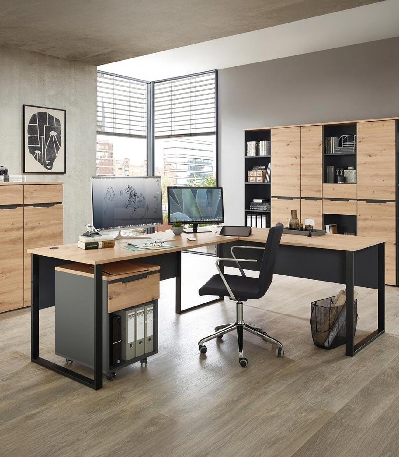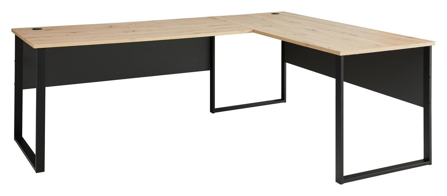 B 233 cm - Artisan Eiche Dekor - Schwarz - Metallgestell - Ansatztisch beidseitig montierbar