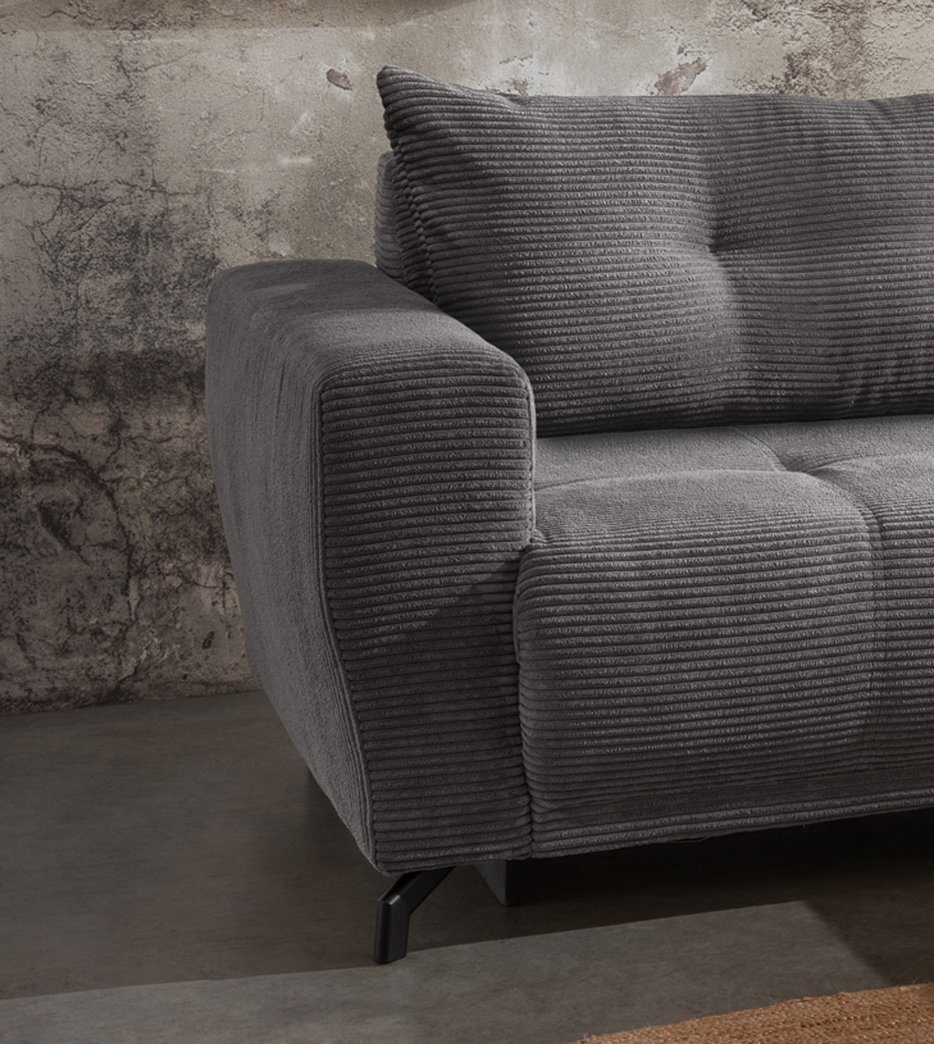 Grau - Schwarz - Cord - Metallfüße - elektr. Sitztiefenverstellung