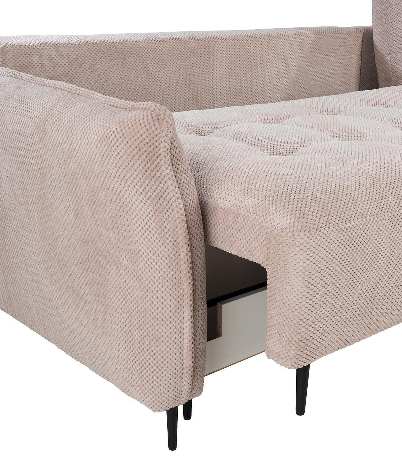 290 x 160 cm - Taupe - Waffelcord - mit Ausziehfunktion und Bettkasten