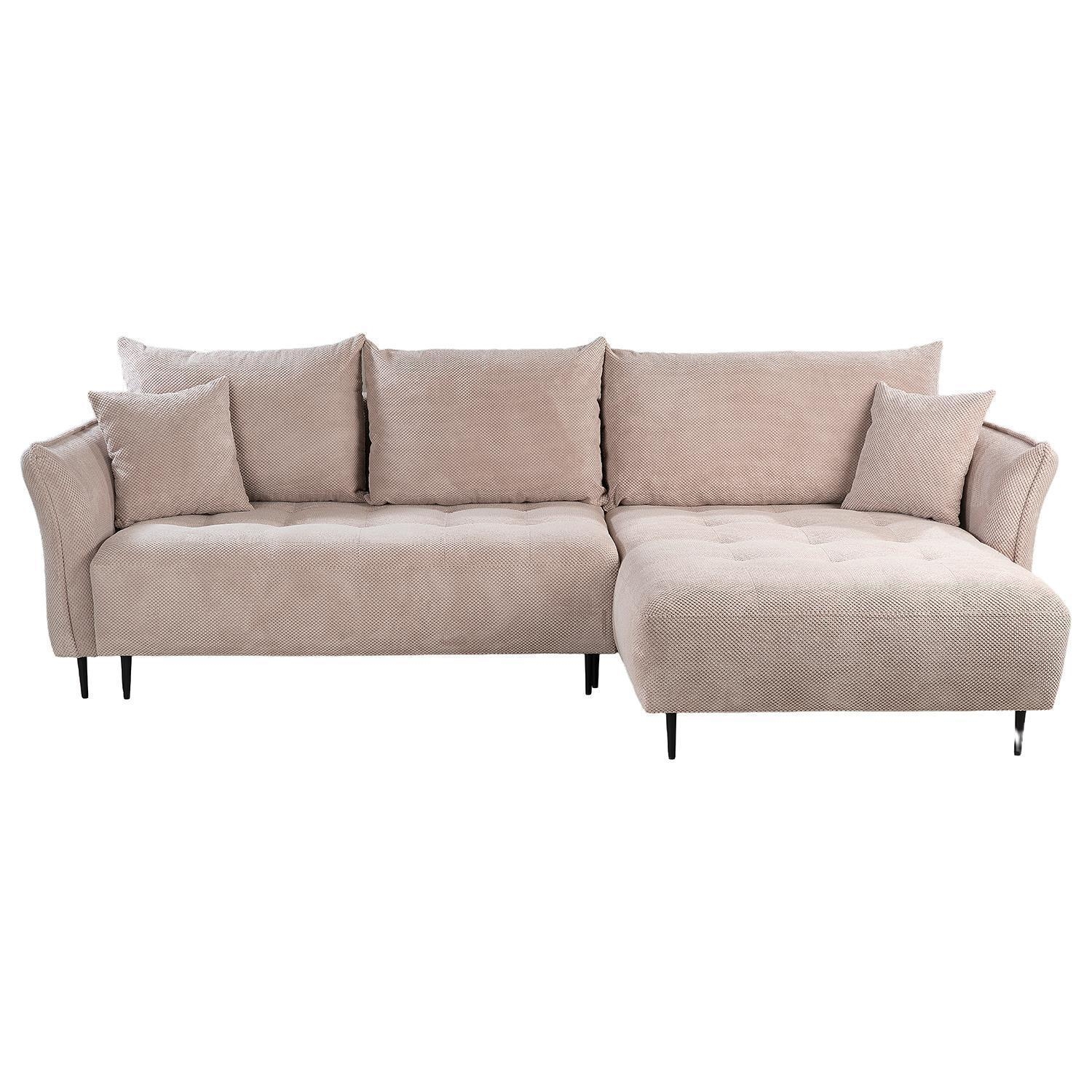 | Lieferumfang: | 1 ausziehbares Ecksofa mit beidseitig montierbarer Ottomane, 3 Rückenkissen und 2 Zierkissen |