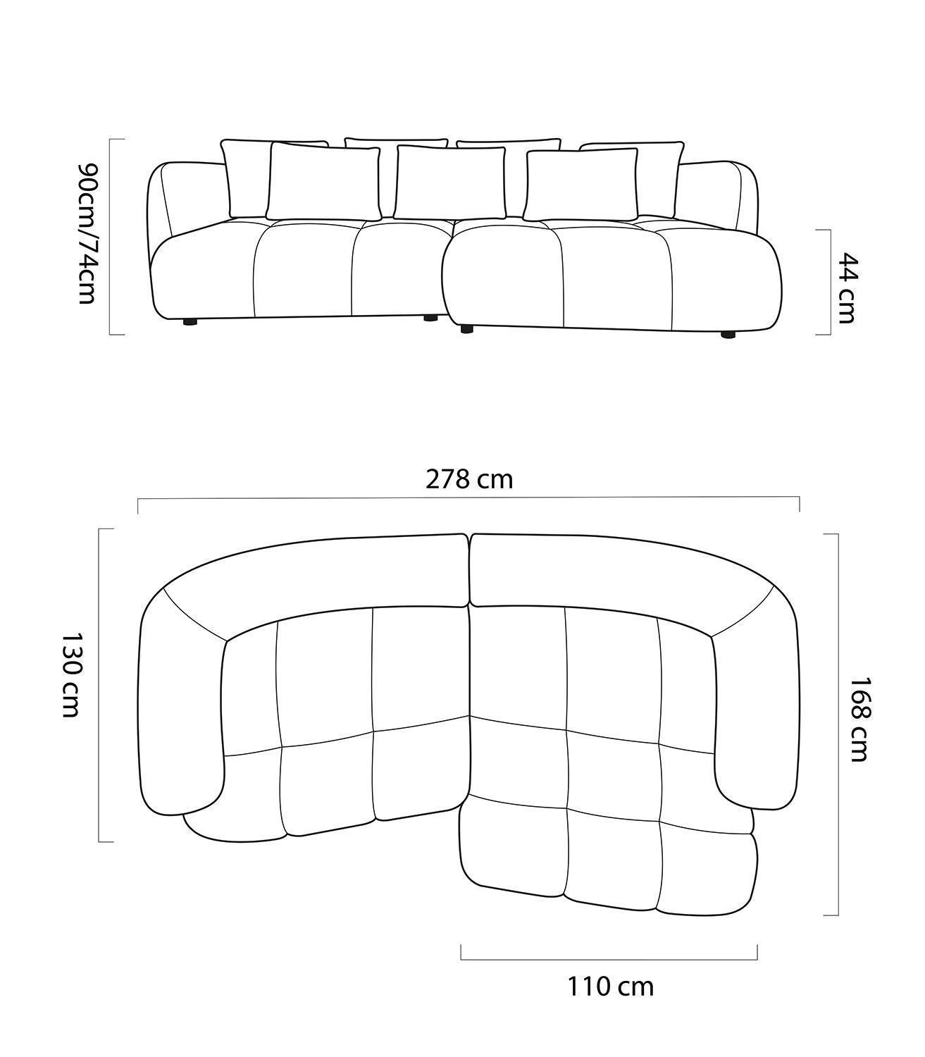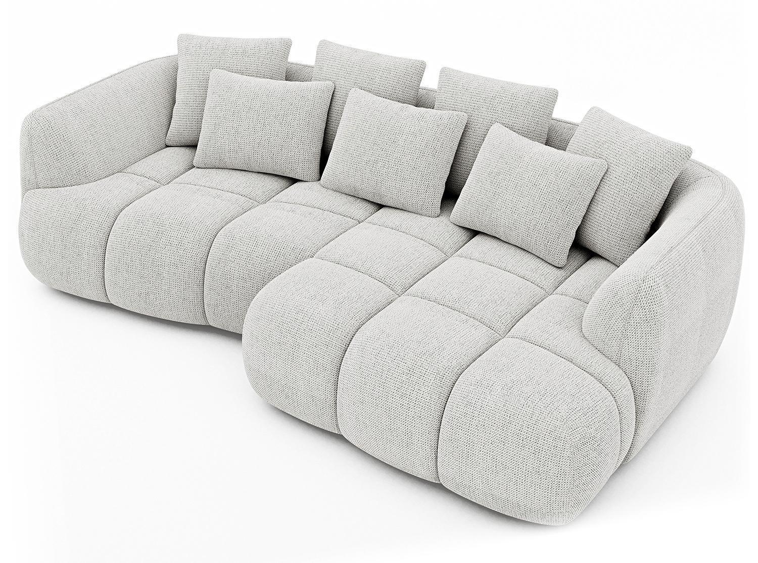 | Lieferumfang: | 1 Ecksofa mit 4 großen und 3 kleinen Rückenkissen. Die Ottomane ist nur rechtsseitig montierbar |