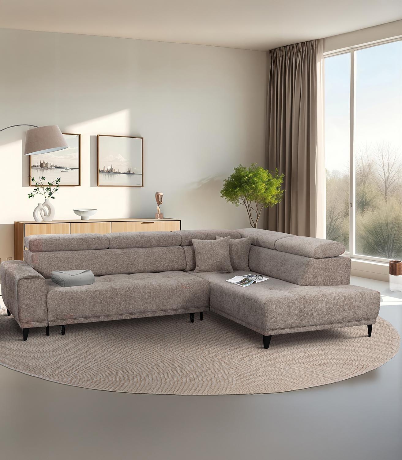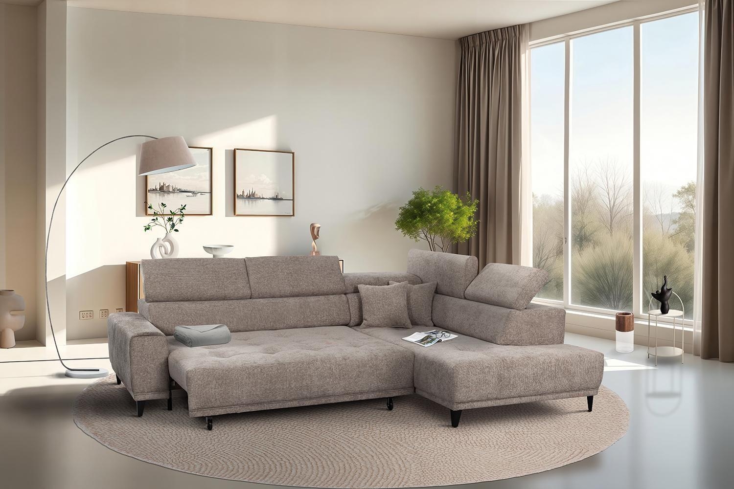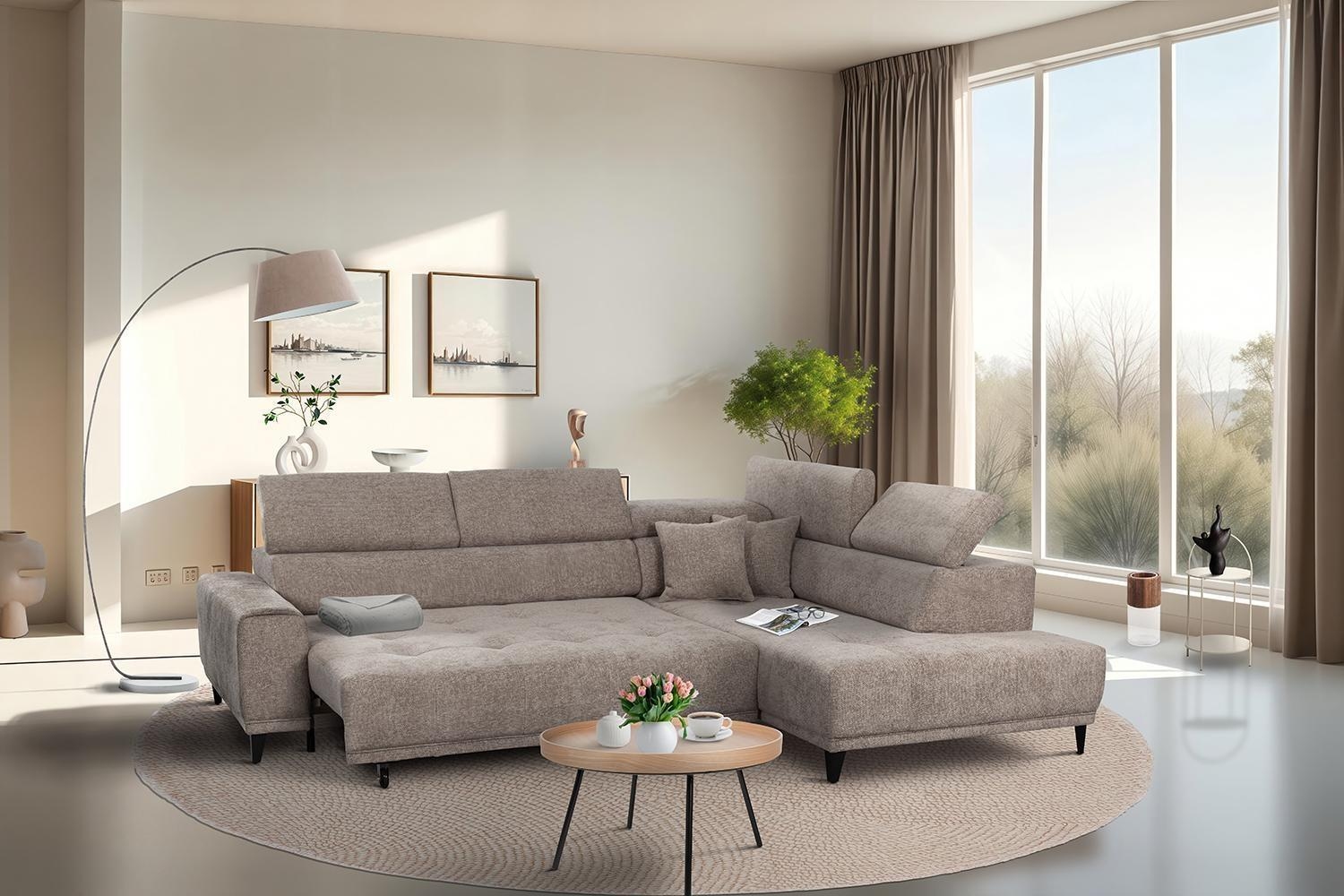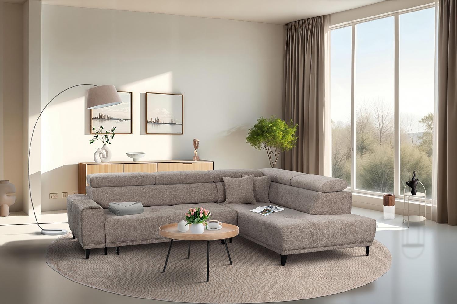 - Ecksofa mit Webstoffbezug in Taupe