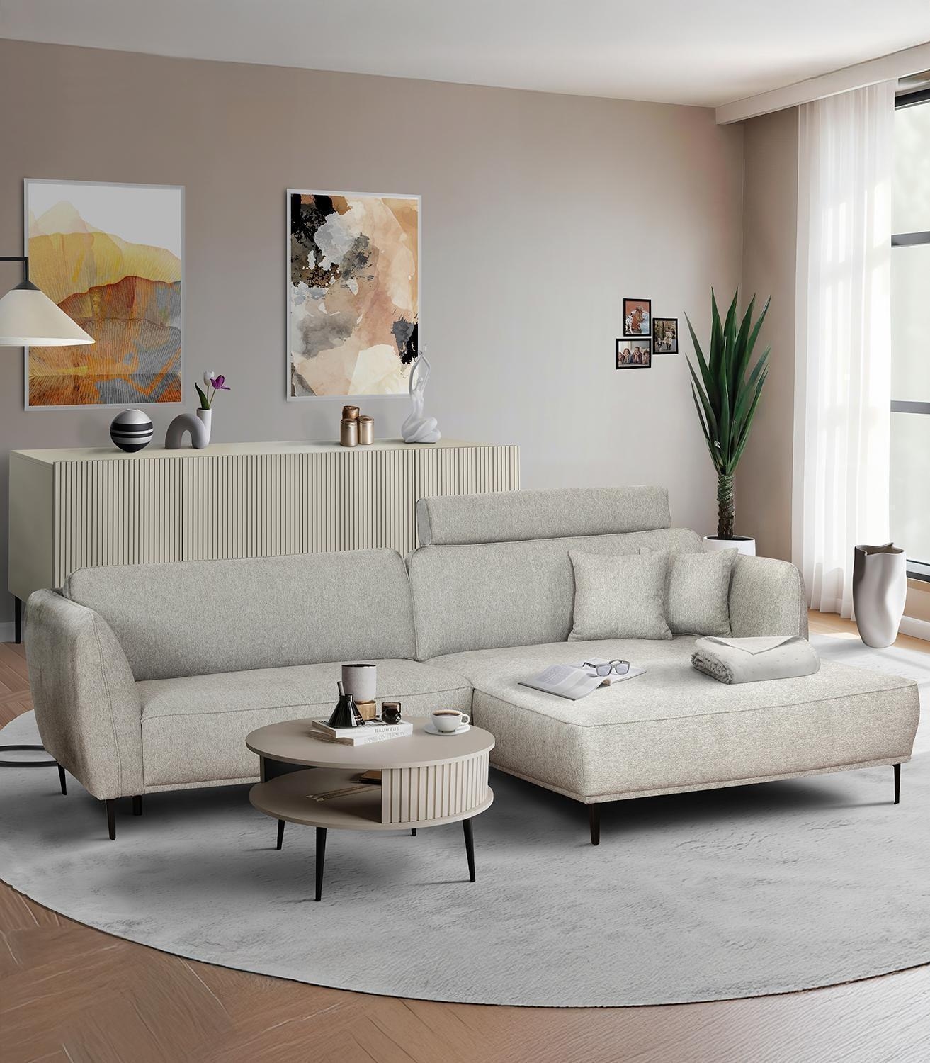 - Ecksofa mit Stoffbezug in Hellgrau