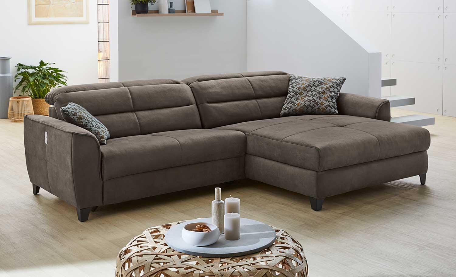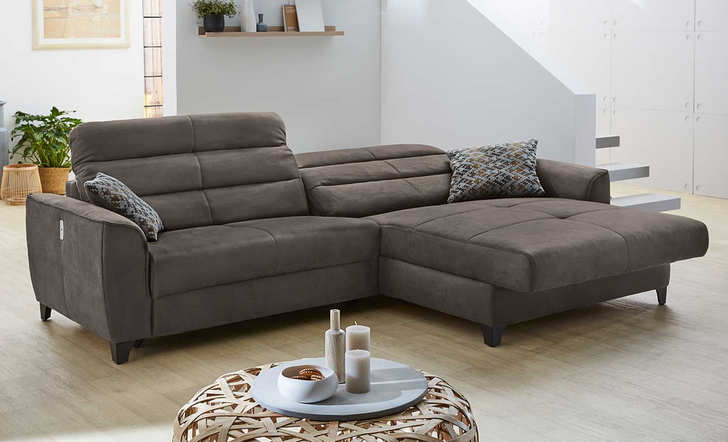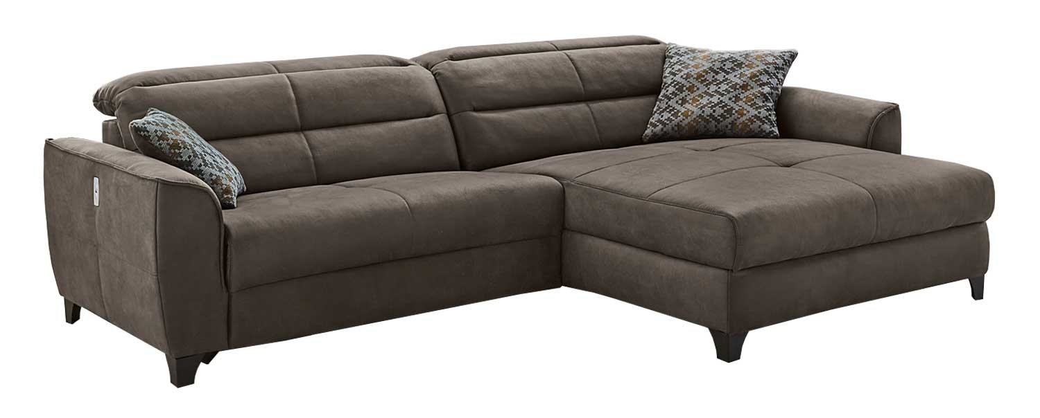 | Lieferumfang: | 1 Ecksofa mit beidseitig montierbarer Ottomane, elektrischer Relaxfunktion, 2 Kopfteilverstellungen und 2 Wendekissen |