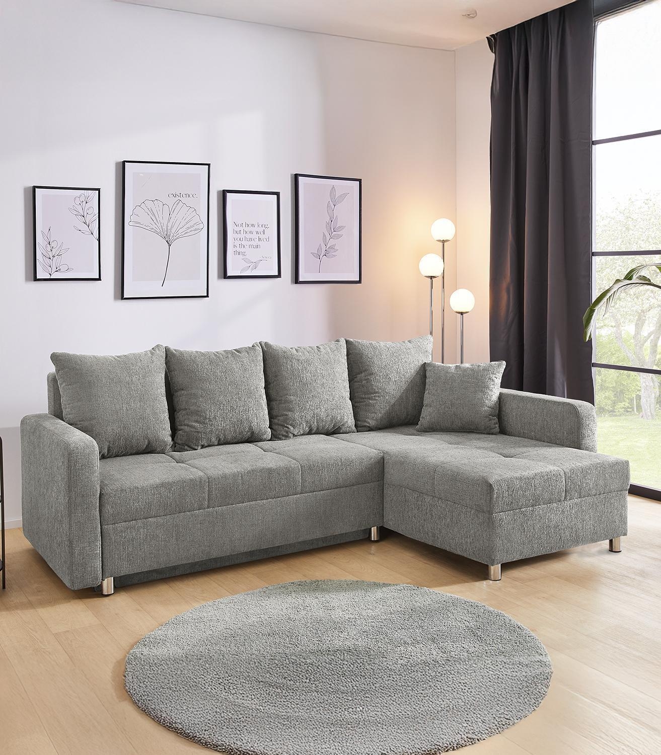 - Ecksofa mit Chenillebezug in Grau