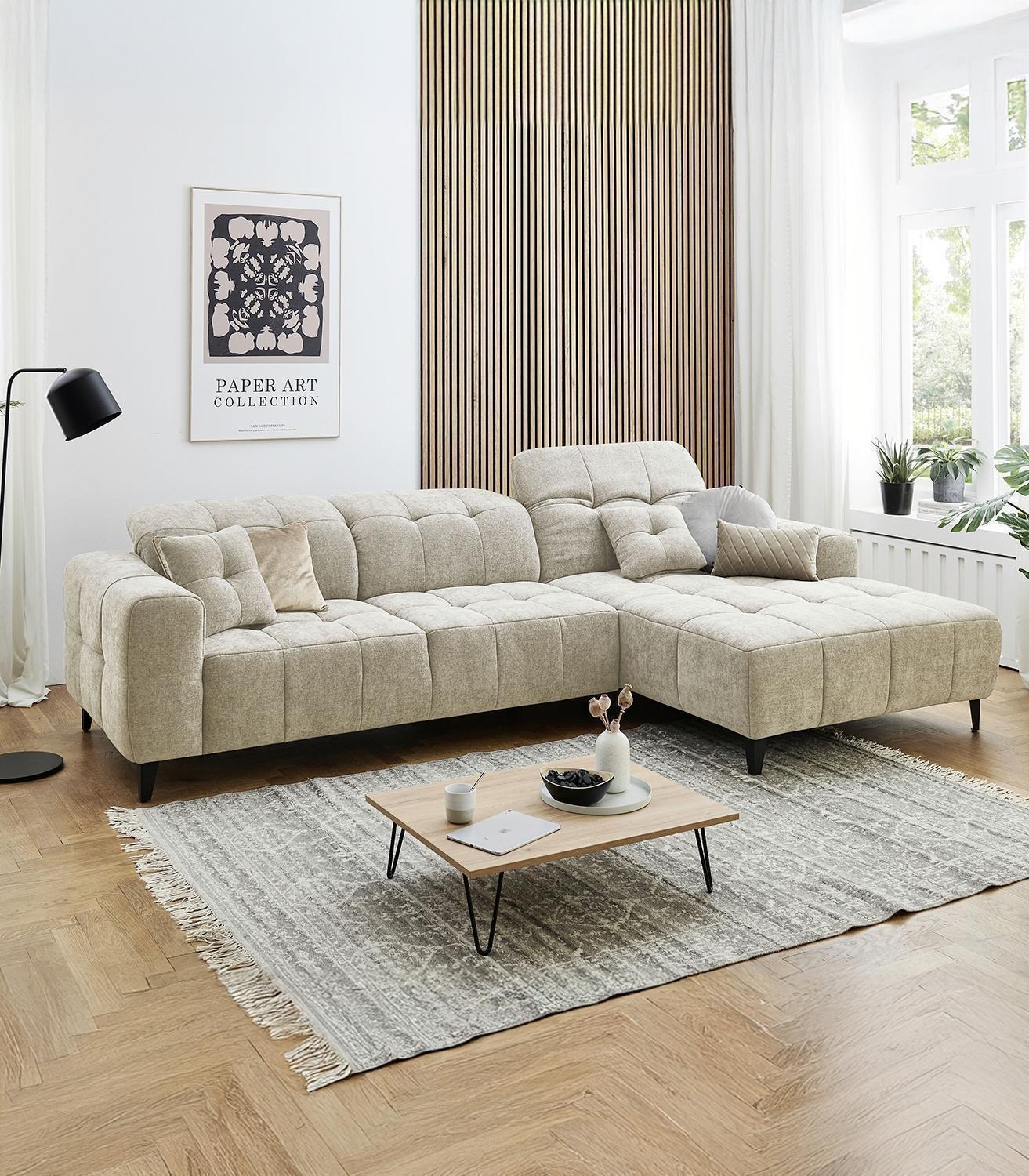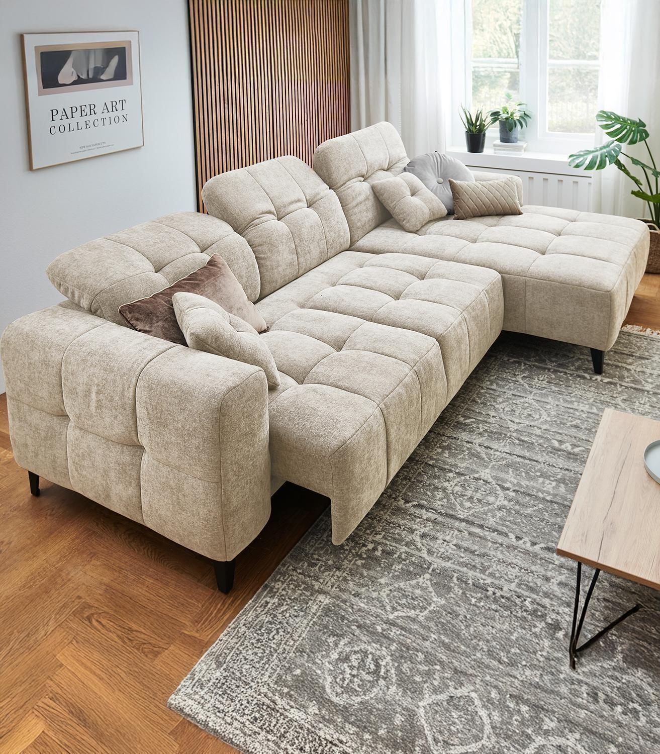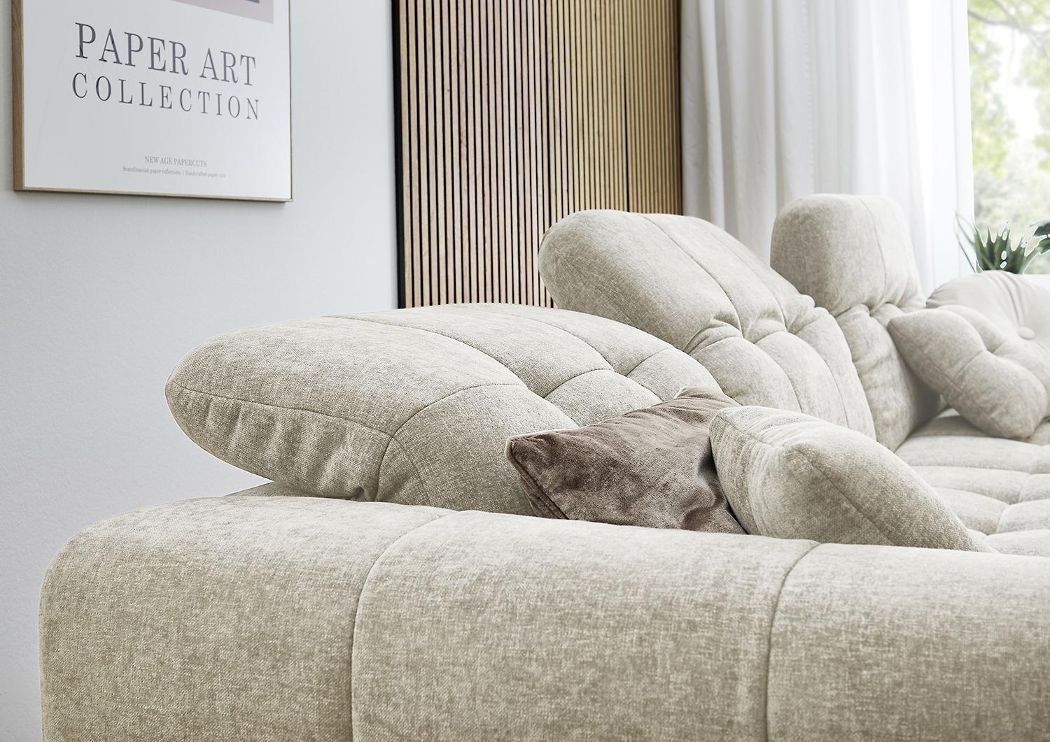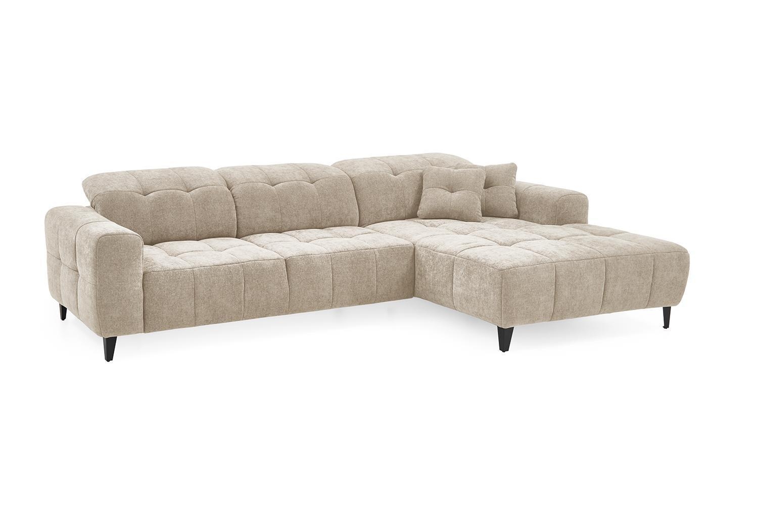 | Lieferumfang: | 1 Ecksofa mit 3 Kopfteilverstellungen und 2 Zierkissen. Die Ottomane ist nur rechtsseitig montierbar |