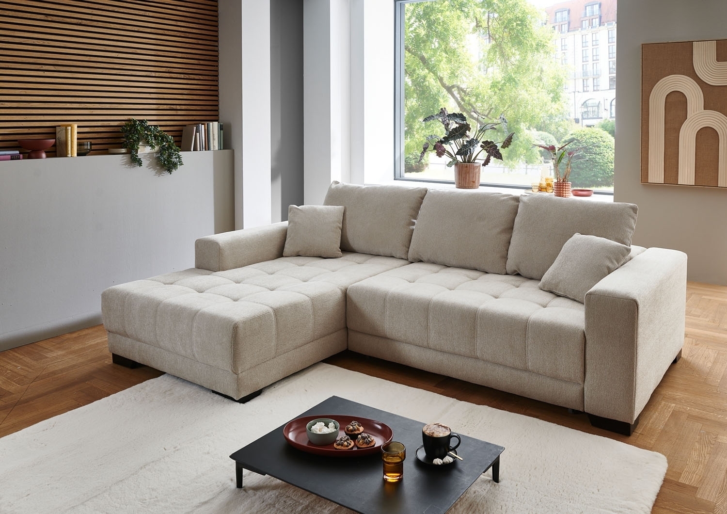 - Ecksofa mit Webstoffbezug in greige