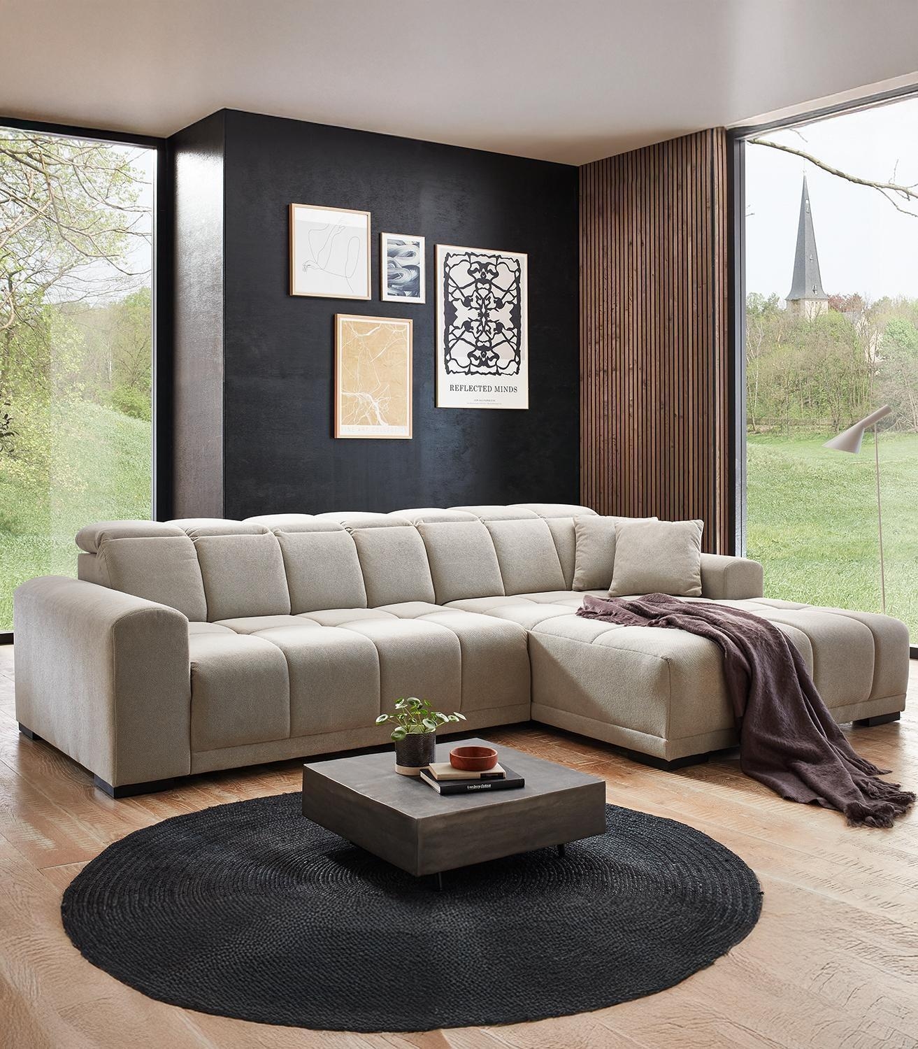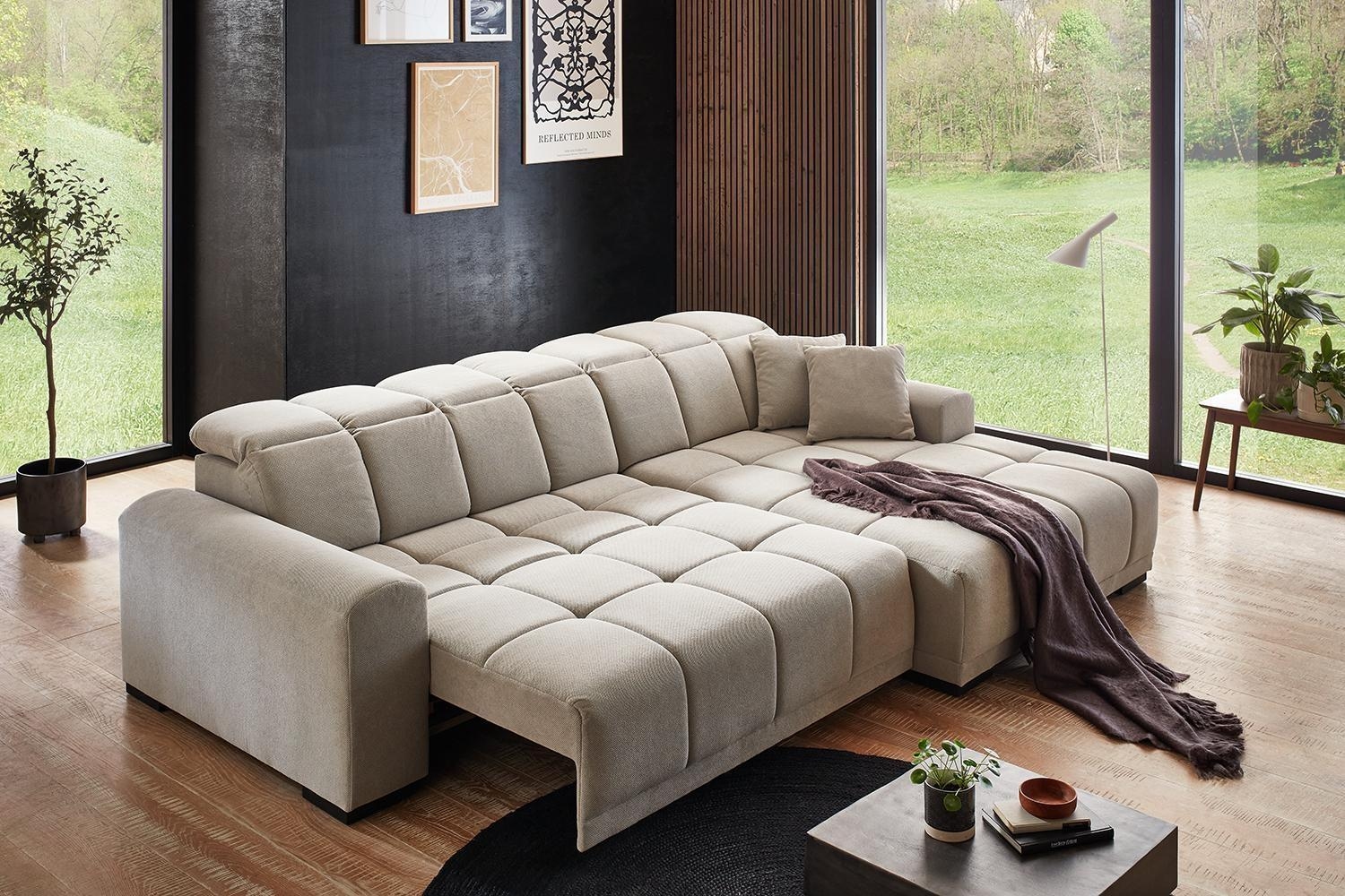 - Ecksofa mit Webstoffbezug in Beige