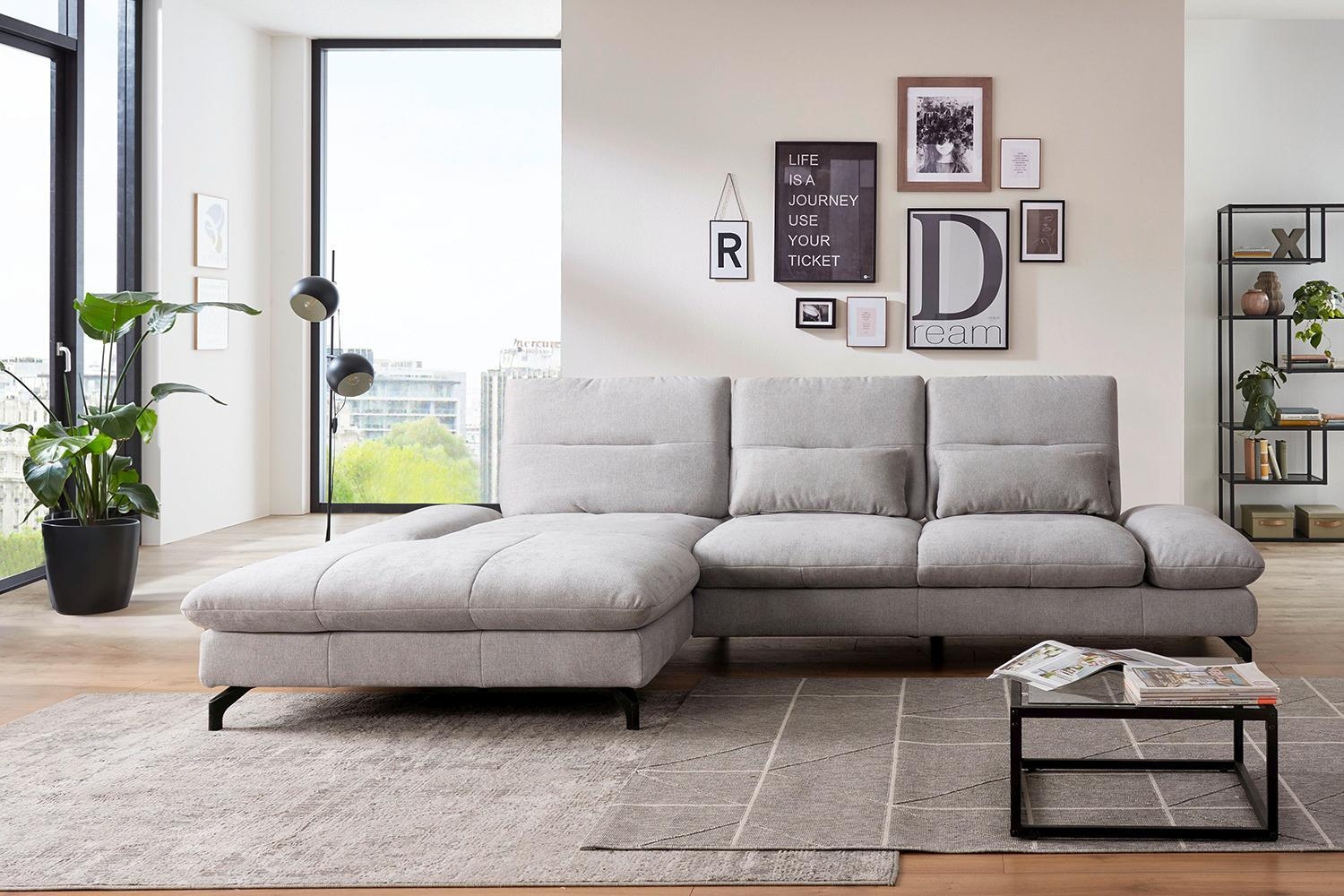 - Ecksofa mit Stoffbezug in Silbergrau