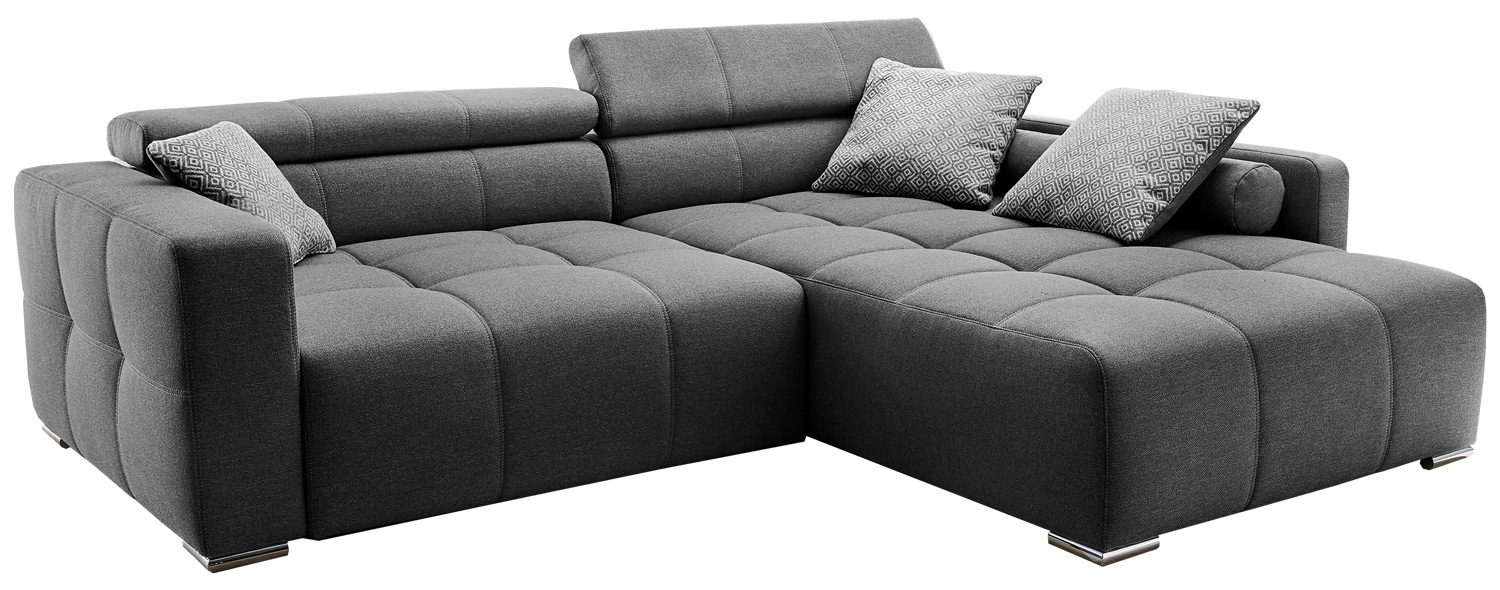 | Lieferumfang: | 1 Ecksofa mit 2 verstellbaren Kopfstützen, 2 Rollen-, 2 Wende- und 1 Zierkissen. Die Ottomane ist beidseitig montierbar |