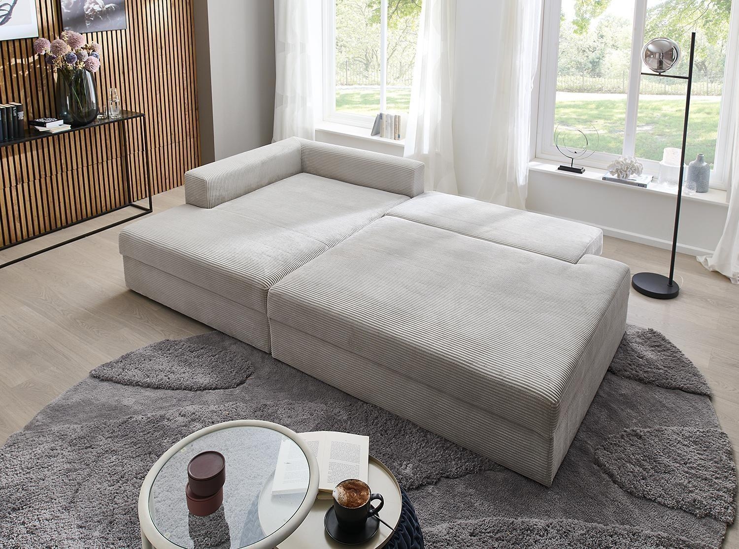 224 x 149 cm - Greige - Cord - mit Ausziehfunktion und Bettkasten