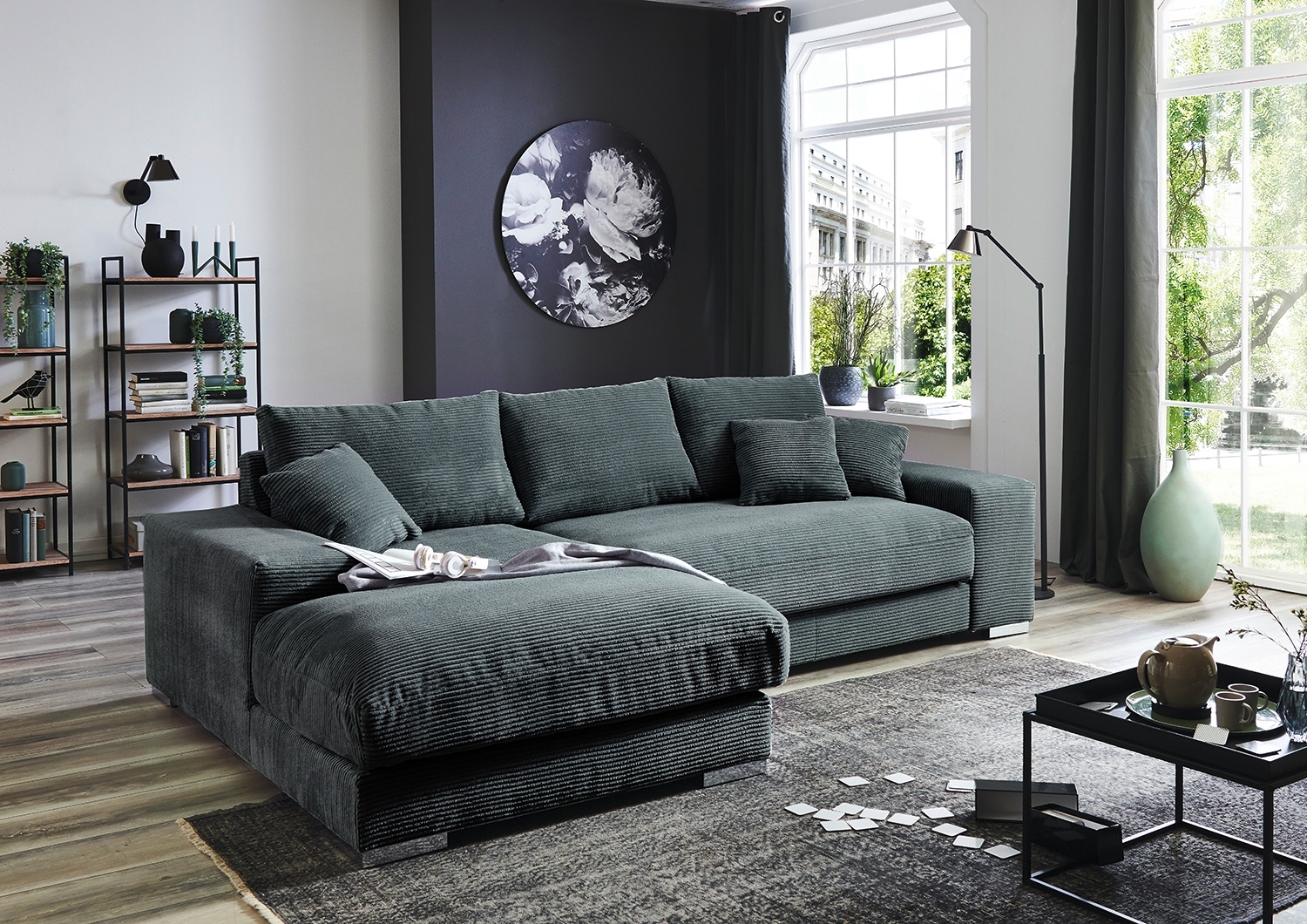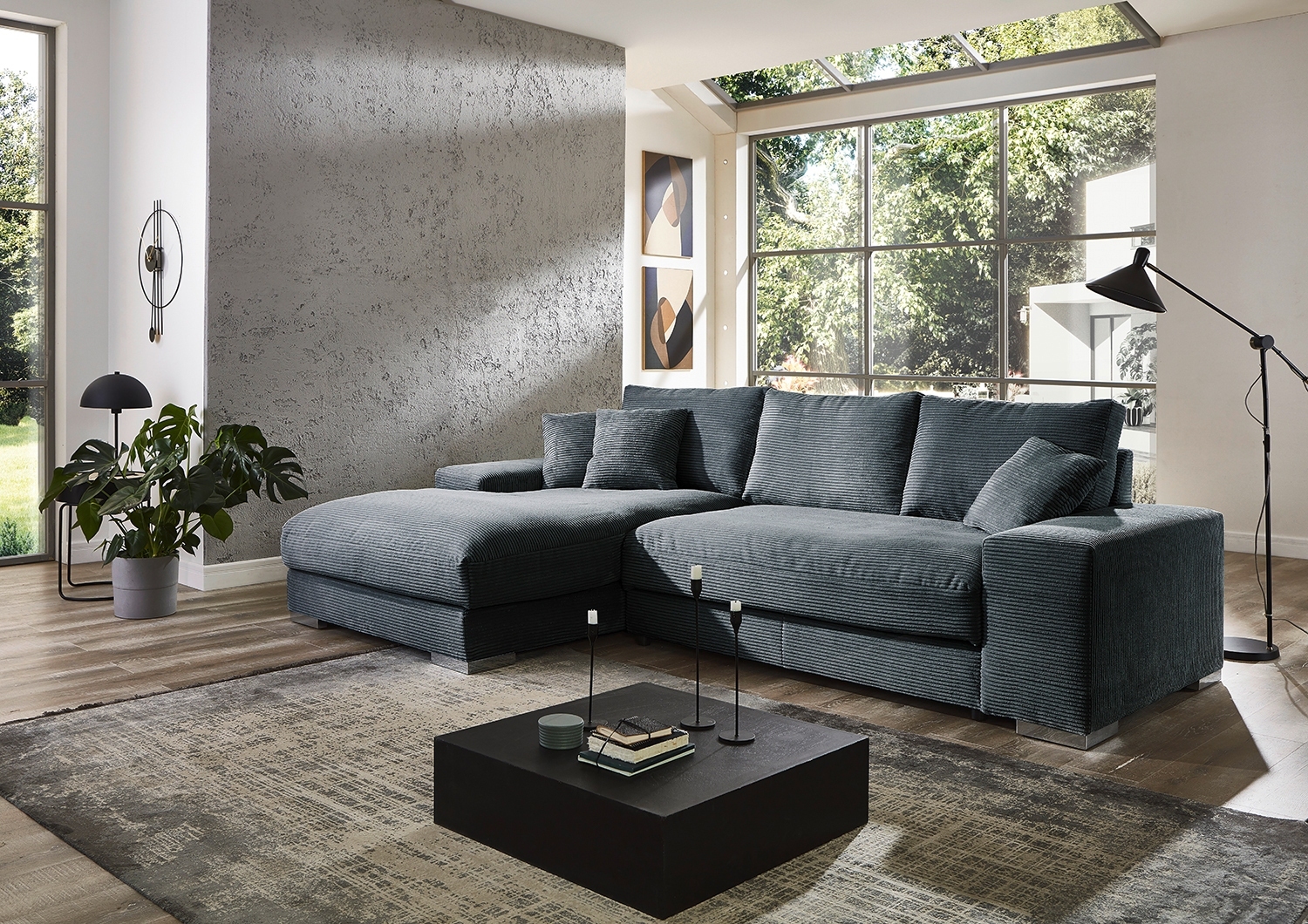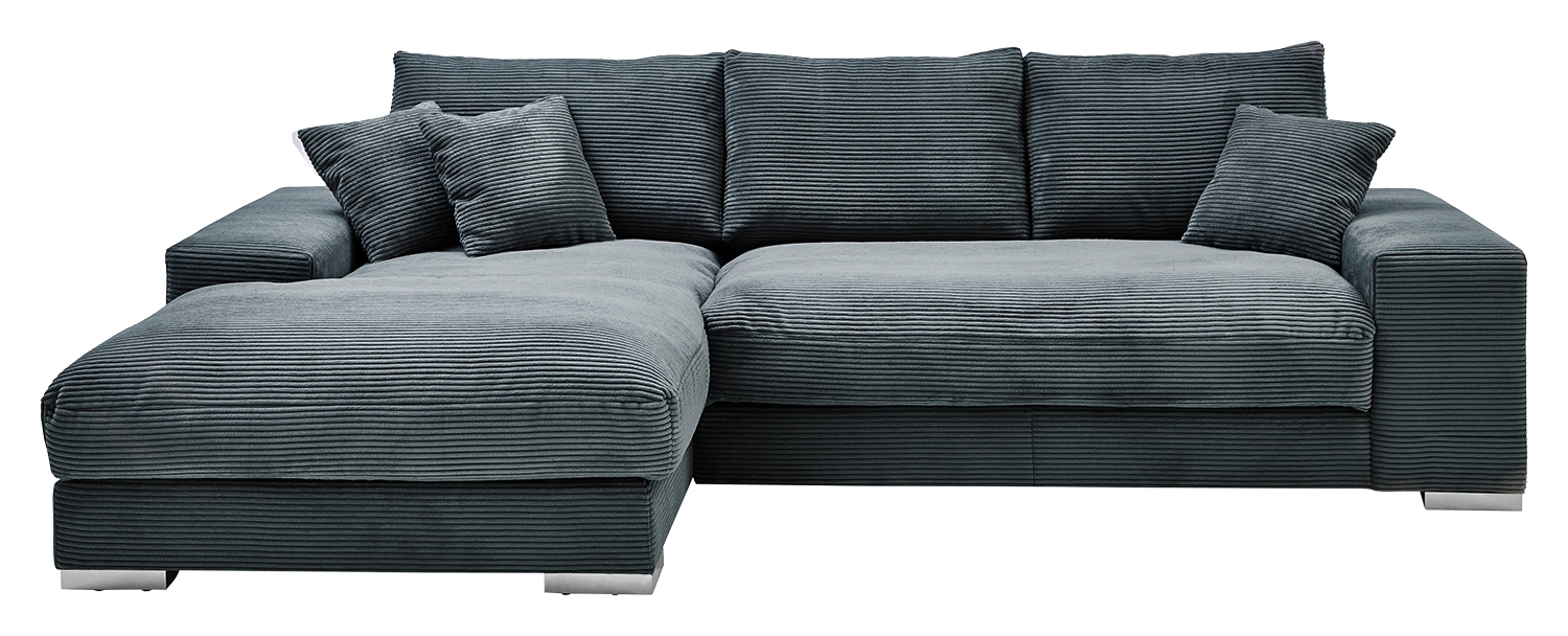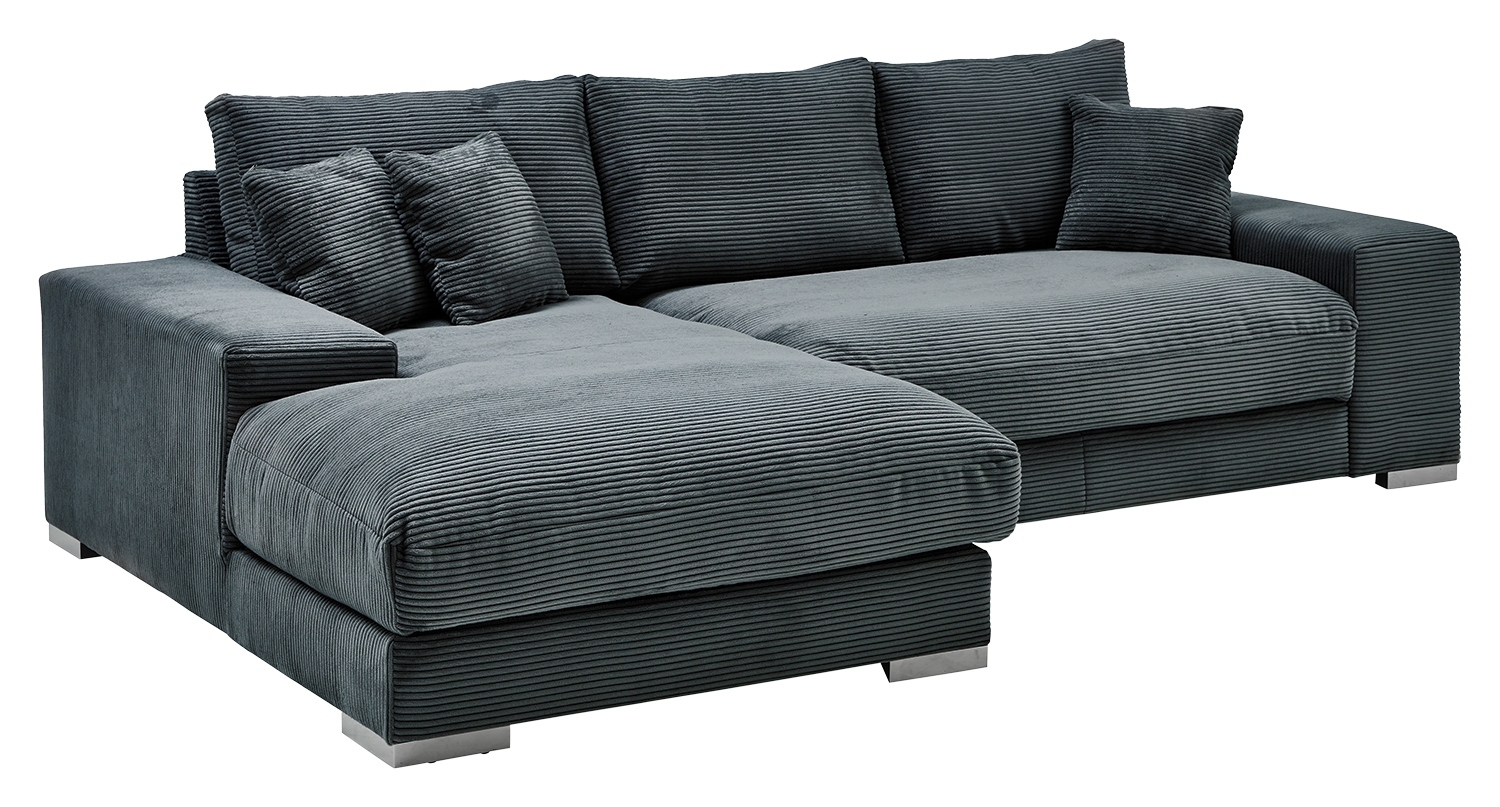 | Lieferumfang: | 1 Ecksofa mit linksseitig montierbarer Ottomane. Mit 3 Rücken- und 3 Zierkissen |