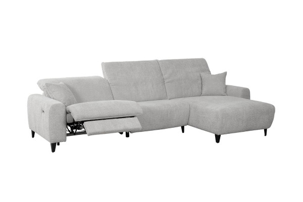 Das Ecksofa VIBORG ist mit einem Stoffbezug in Hellgrau ausgestattet und verfügt über drei Kopfteilverstellungen. Die linke Sitzfläche ist mit einer elektrischen Relaxliegefunktion versehen. Die Polsterung besteht aus Kaltschaum und wird durch eine Nosagunterfederung ergänzt. Zwei Zierkissen sind im Lieferumfang enthalten. Die Ottomane ist linksseitig montierbar. Das Sofa misst 315 cm in der Breite, 82 cm in der Höhe, 183 cm in der Tiefe und hat eine Sitzhöhe von 46 cm.