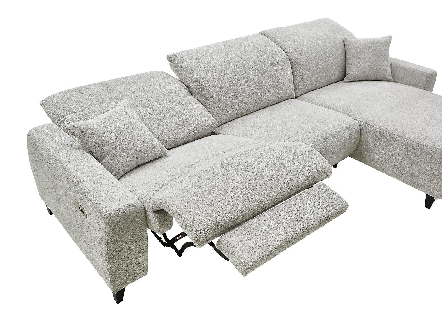 | Lieferumfang: | 1 Ecksofa mit elektrischer Relaxliegefunktion, 3 Kopfteilverstellungen und 2 Zierkissen. Die Ottomane ist nur linksseitig montierbar |