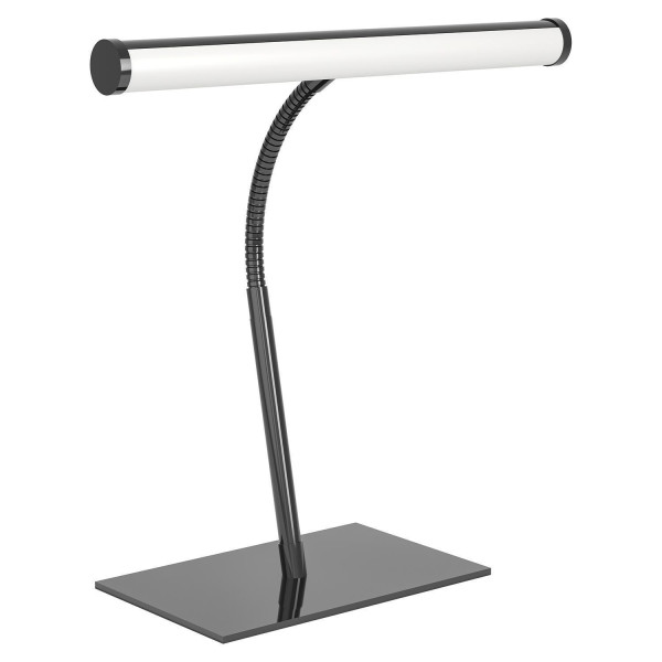 Die LED-Schreibtischleuchte RICCIONE der Marke EGLO ist aus schwarzem Aluminium sowie Stahl gefertigt und verfügt über einen flexibel verstellbaren Lampenschirm. Diese Arbeitsplatzleuchte weist eine Breite von 30 cm, eine Höhe von 39,5 cm und eine Tiefe von 19 cm auf. Die Steuerung erfolgt über einen integrierten Touchsensor, über den sich sowohl die Farbtemperatur im Bereich von 2700 bis 6500 Kelvin anpassen als auch die Helligkeit dimmen lässt. Das fest verbaute LED-Leuchtmittel besitzt eine Leistung von 5 Watt sowie einen Lichtstrom von 500 Lumen.