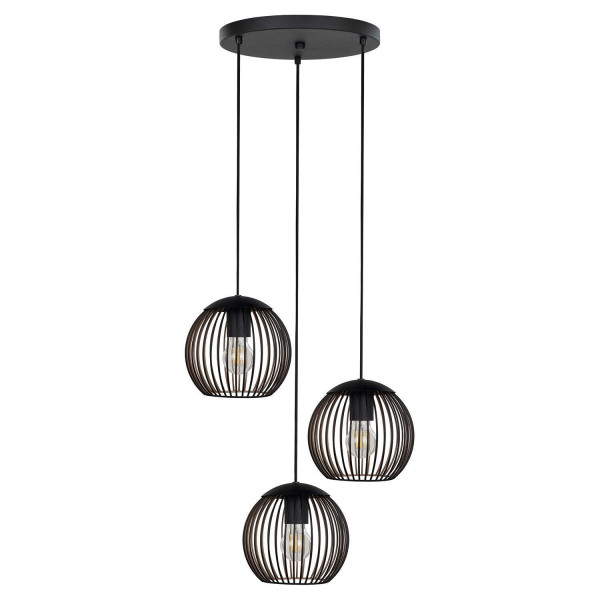 Die Pendelleuchte ALMANZORA der Marke EGLO ist aus schwarzem Metall gefertigt. Die Lampenschirme bestehen ebenfalls aus Metall und sind in den Farben Kupfer und Schwarz gehalten. Für den Betrieb sind drei austauschbare E27-Leuchtmittel mit einer Leistung von jeweils maximal 40 Watt vorgesehen, welche nicht im Lieferumfang enthalten sind. Die Abmessungen der Leuchte umfassen einen Durchmesser von 46,5 cm sowie eine Gesamthöhe von 130 cm.