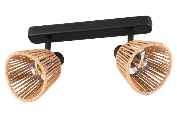 Der Strahler KEELBY der Marke EGLO ist aus schwarzem Metall gefertigt und mit zwei Lampenschirmen aus braunem Papier ausgestattet. Diese Deckenleuchte weist eine Breite von 30 cm, eine Höhe von 14 cm sowie eine Tiefe von 4,5 cm auf. Die einzelnen Schirme dieses Spotbalkens sind verstellbar, was eine individuelle Ausrichtung des Lichts ermöglicht. Die Leuchte verfügt über zwei E14-Fassungen für austauschbare Leuchtmittel mit einer Leistung von jeweils maximal 40 Watt. Leuchtmittel sind nicht im Lieferumfang enthalten.