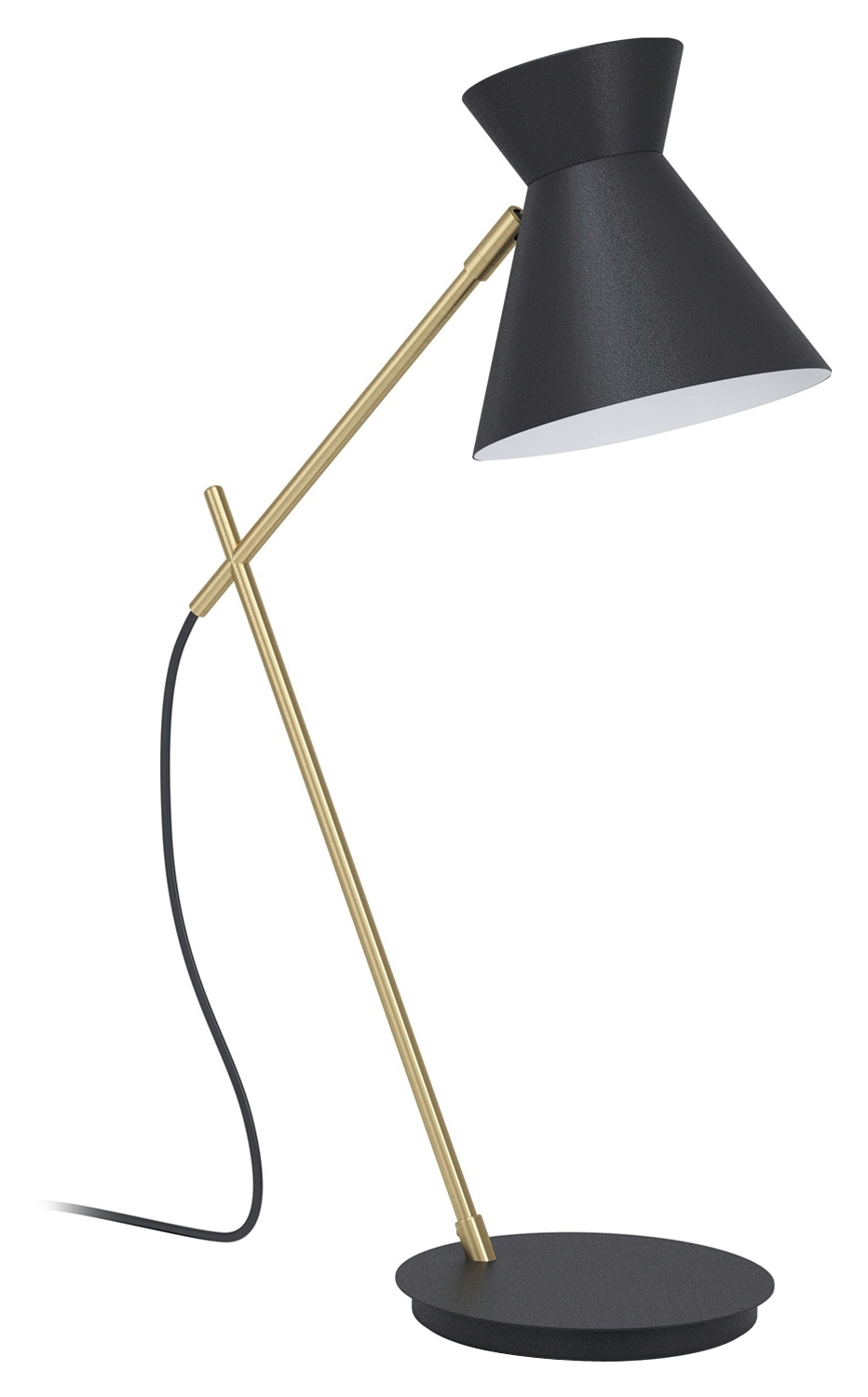 - Standfuß und Lampenschirm aus Metall in schwarz