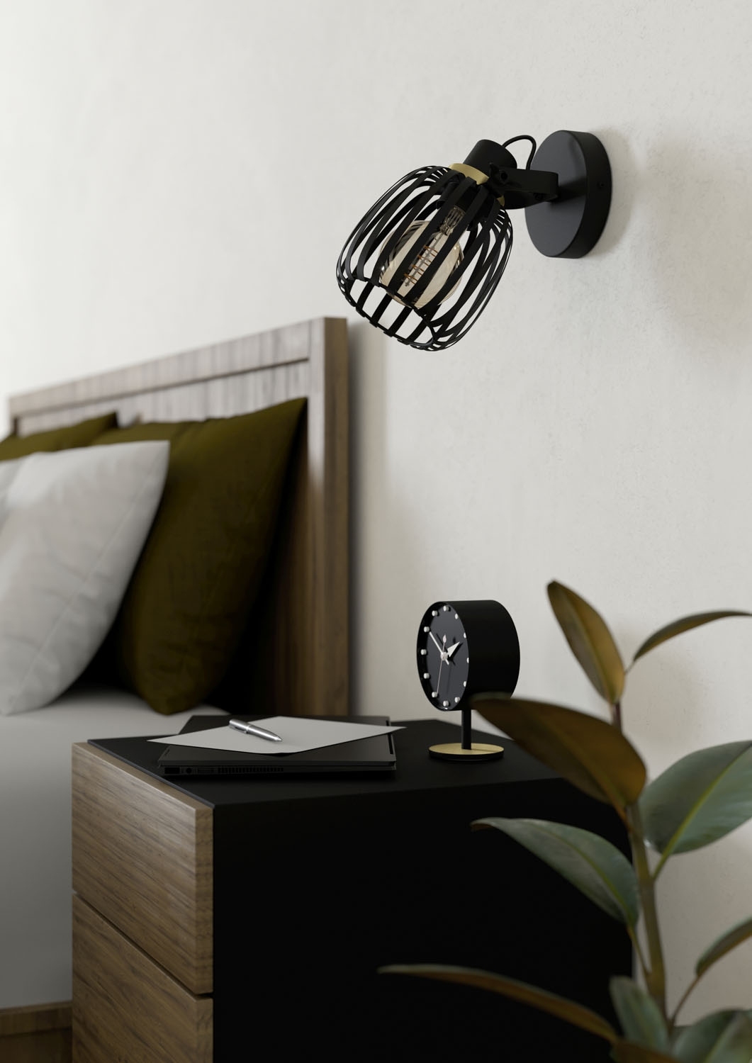 Die schwarze Wandleuchte (14x15x19 cm) überzeugt durch minimalistisches Design. Im Lieferumfang: 1 Leuchte ohne Leuchtmittel, Kabel und Stecker. Zur Installation ist eine Unterputzverkabelung notwendig. Das Metallgestell und der Drahtschirm verleihen der Leuchte eine moderne Ästhetik. Mit E27-Fassung für austauschbare Leuchtmittel bis 40 Watt. Verstellbare Funktion, bedienbar über Wandschalter. Schutzart IP20. Ideal für eine stilvolle und flexible Raumbeleuchtung.