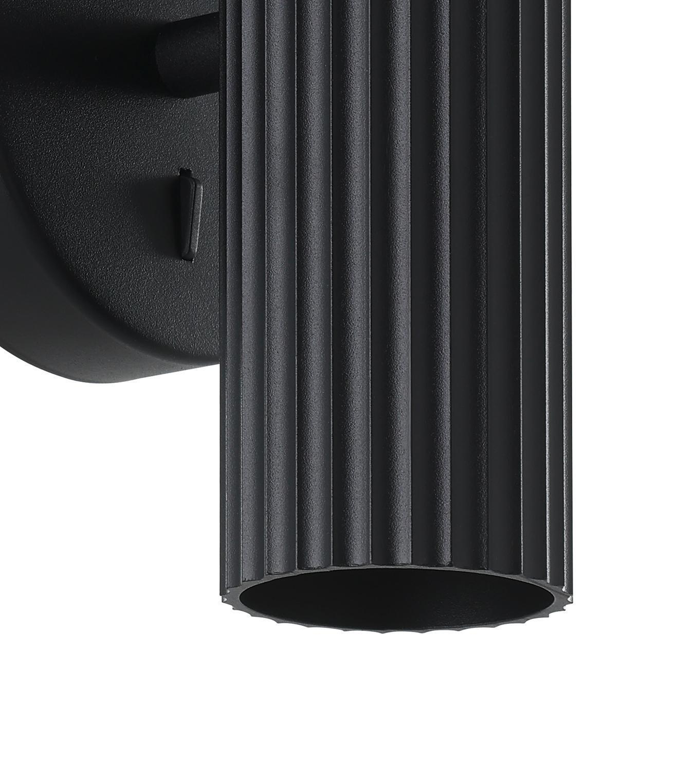 Die Wandleuchte PORTILLO der Marke EGLO besteht aus schwarzem Metall und ist für eine Up-Down-Beleuchtung konzipiert. Diese Wandlampe weist eine Breite von 10,5 cm, eine Höhe von 20 cm sowie eine Tiefe von 8,5 cm auf. Das Gehäuse verfügt über zwei GU10-Fassungen für austauschbare Leuchtmittel mit einer Leistung von jeweils maximal 40 Watt. Durch die Konstruktion wird das Licht sowohl nach oben als auch nach unten abgegeben. Leuchtmittel sind nicht im Lieferumfang enthalten.