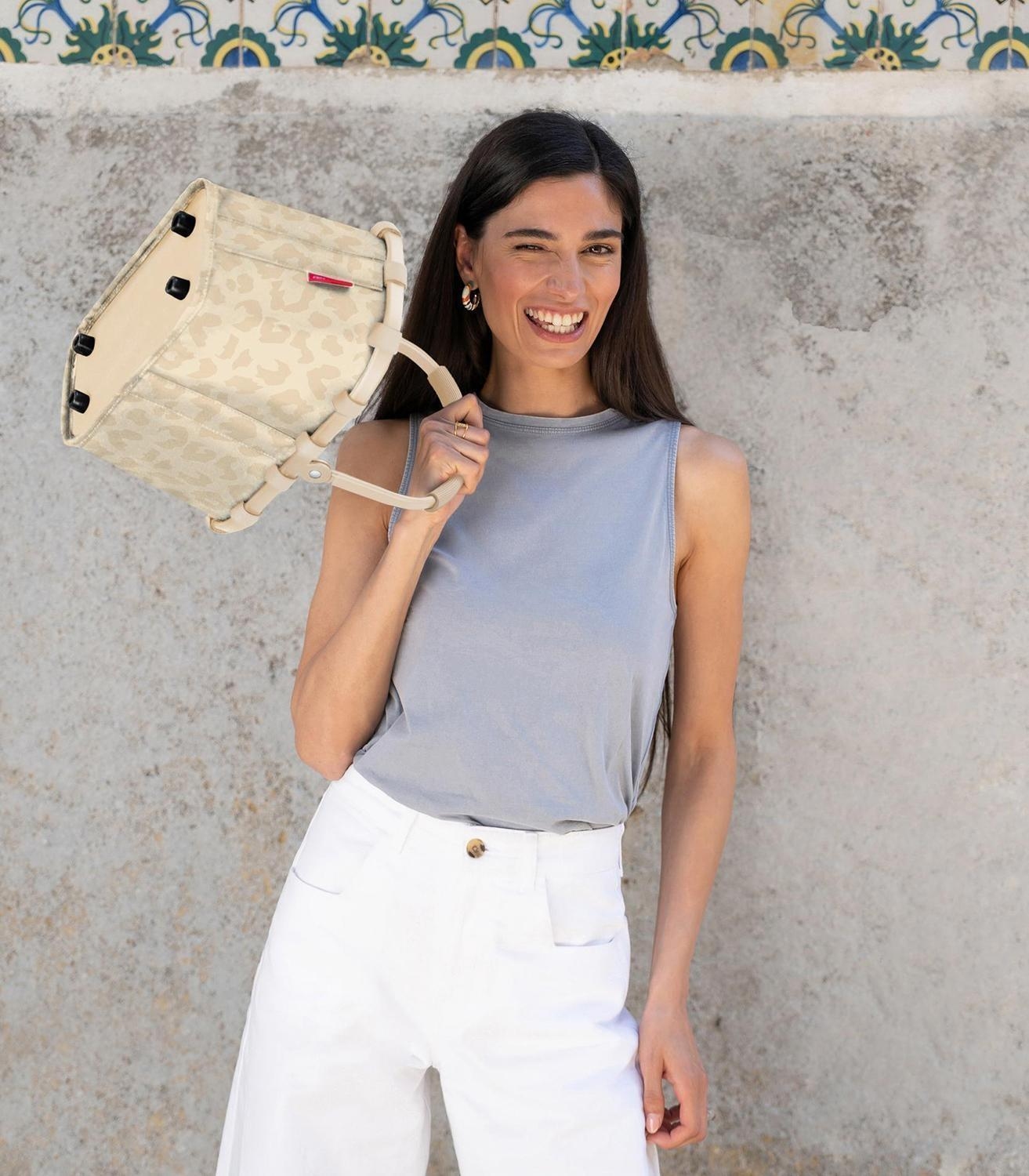 Bitte berücksichtigen Sie die Abmessungen dieser XS Ausführung. Der kleine Einkaufskorb CARRYBAG XS LEO VANILLA von Reisenthel mit Leopardenmuster in Beige und Creme ist eine äußerst praktische Lösung für Ihre Einkäufe, die besonders auf Ihre Bedürfnisse zugeschnitten ist.
