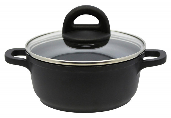 Ø 16 cm - Schwarz - Aluminiumguss - mit Glasdeckel - Antihaftbeschichtung