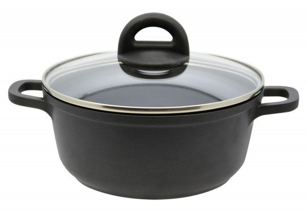 Ø 20 cm - Schwarz - Aluminiumguss - mit Glasdeckel - Antihaftbeschichtung