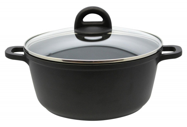 Ø 24 cm - Schwarz - Aluminiumguss - mit Glasdeckel - Antihaftbeschichtung