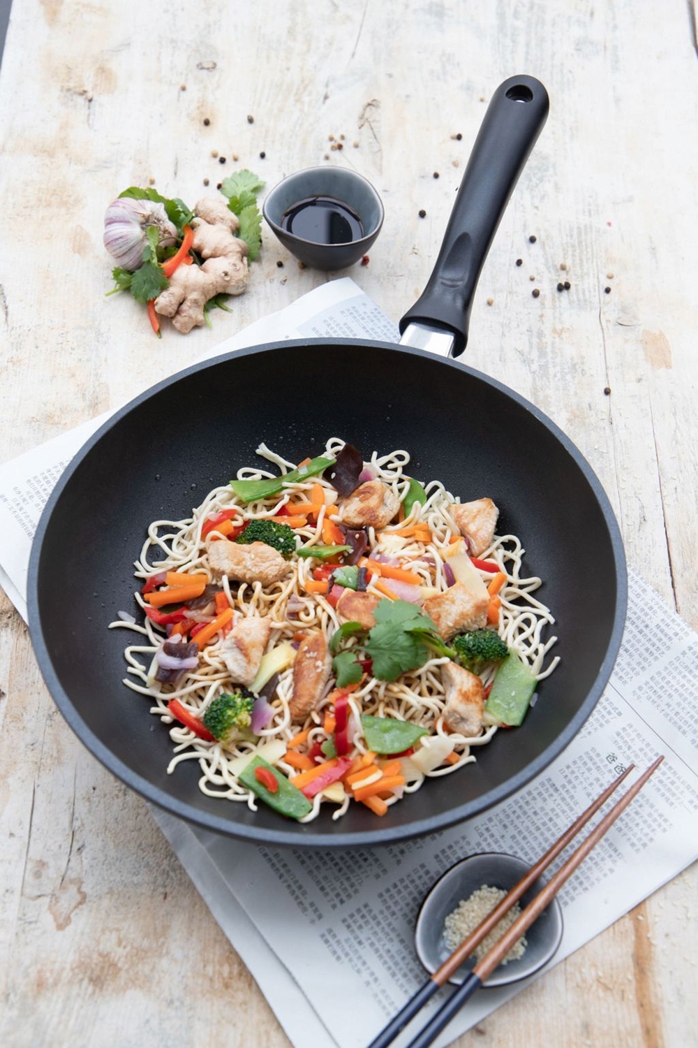 - Wokpfanne aus Aluminiumguss in Schwarz