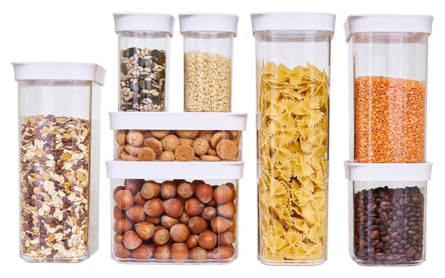 | Lieferumfang: | 5-tlg. Vorratsdosen-Set: 1 Dose mit 450 ml, 2 Dosen mit 1000 ml, 1 Dose mit 1600 ml, 1 Dose mit 2200 ml |