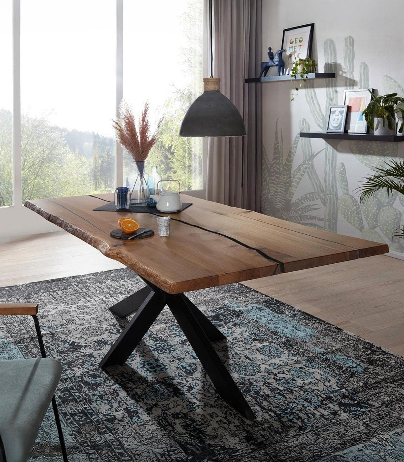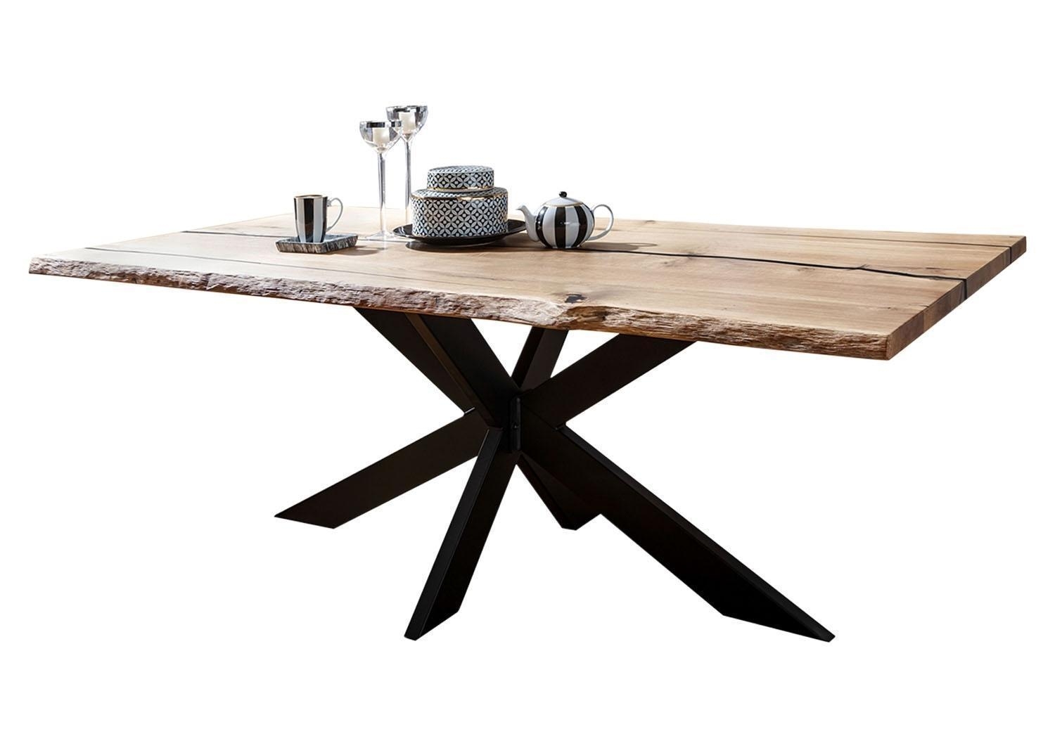 200 x 100 cm - Wildeiche massiv geölt - Metallgestell