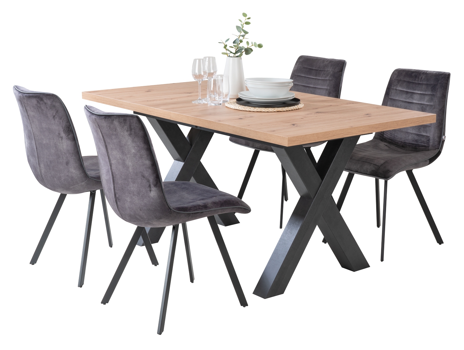 Asteiche Dekor - Schwarzstahl Dekor - 160 x 90 cm - ausziehbar