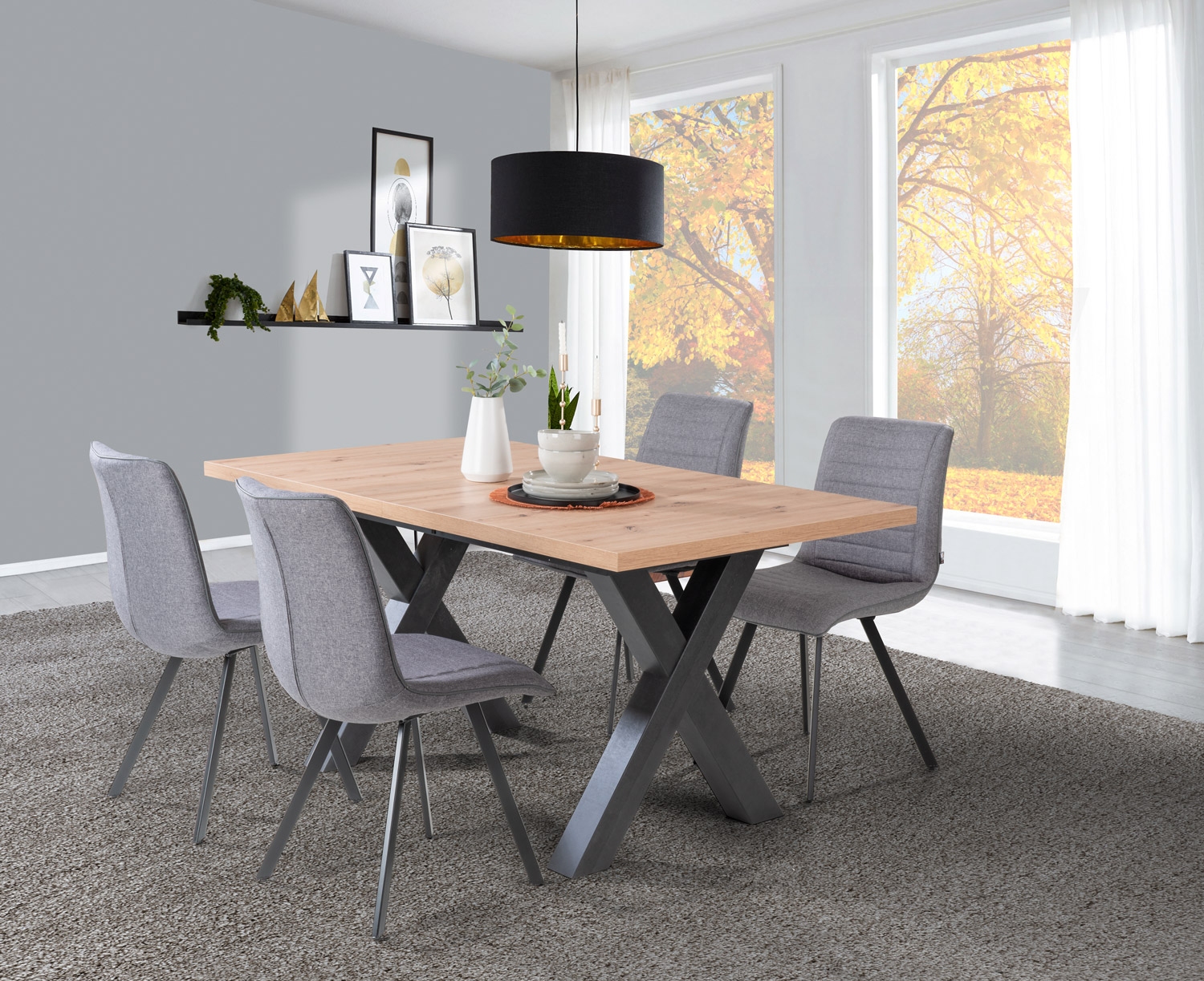 - X-Gestell in Schwarzstahl Dekor